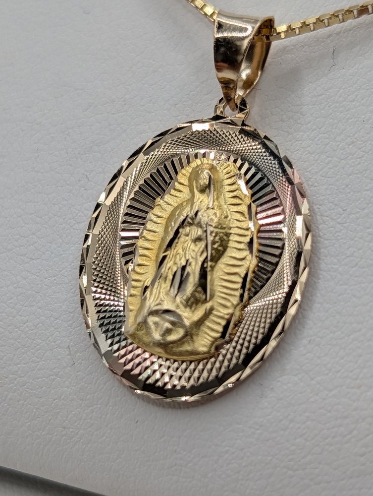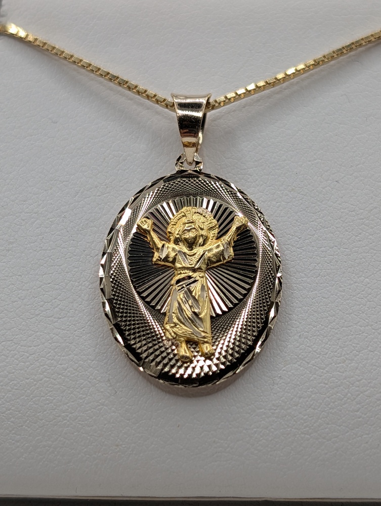 10kt Yellow Gold Oval Double Sided 1" Religious Medal Pendant - 2.70 Grams   [Chain Sold Separately]