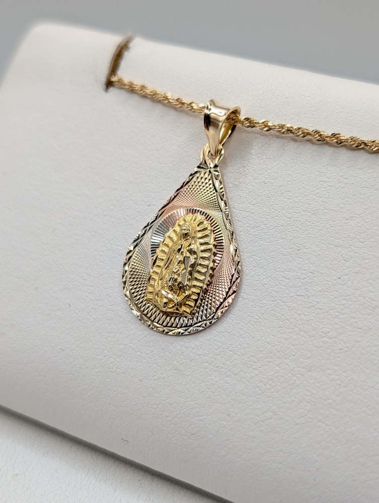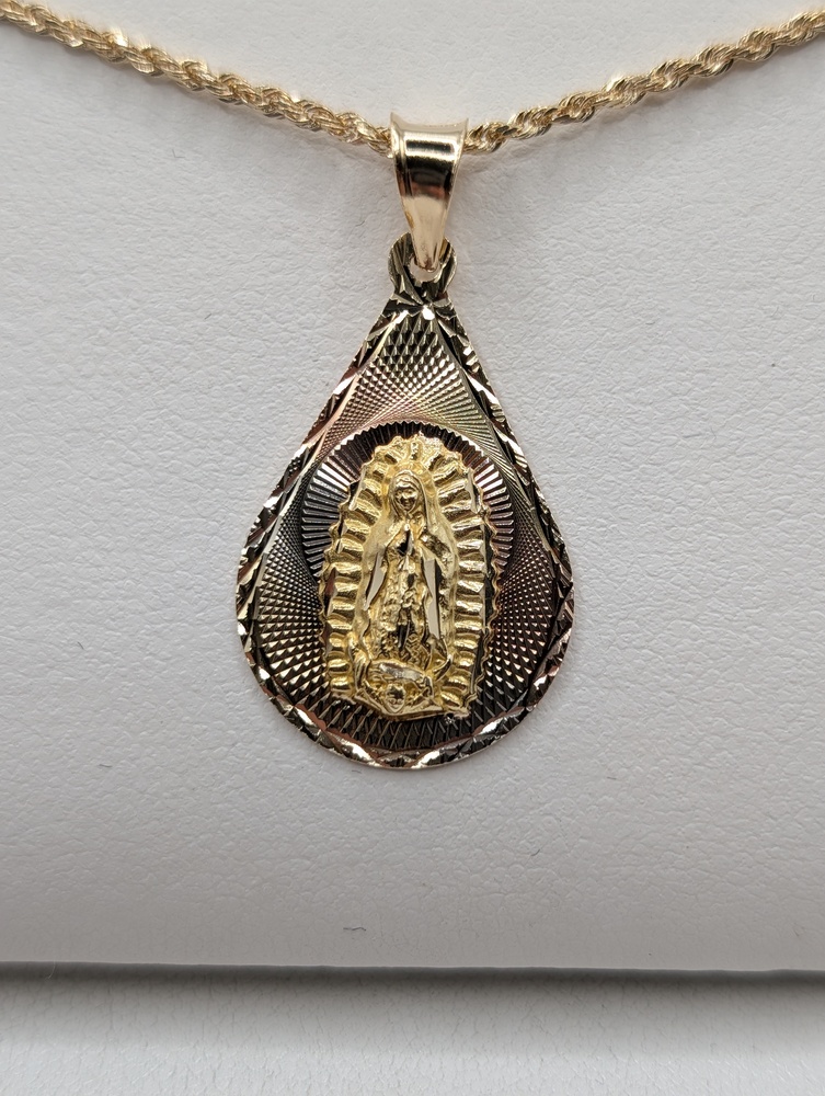 14kt Tri Color Gold 1 1/8" Pear Shaped Religious Medal Pendant - 2.00 Grams  {Chain Sold Separately}