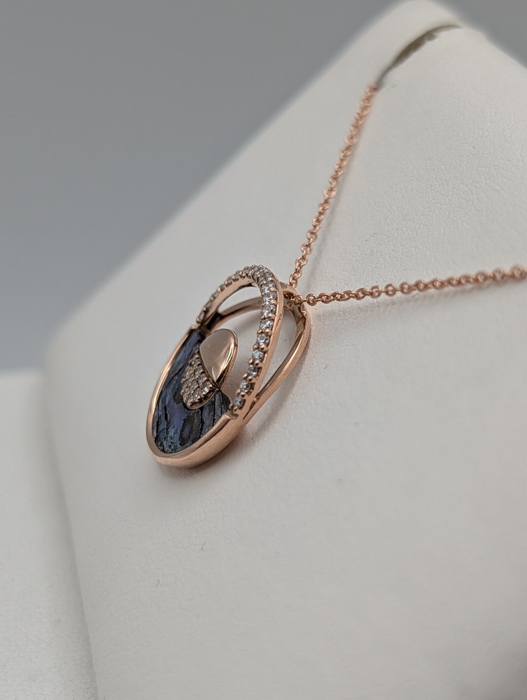 14kt Rose Gold Second Hand Na Hoku ~.40 Total Carat Weight H Color; VS2 Clarity Round Brilliant Cut Diamond and Abalone Accent 3/4" Horizon Slider Pendant - 2.40 Grams {Chain Sold Separately}