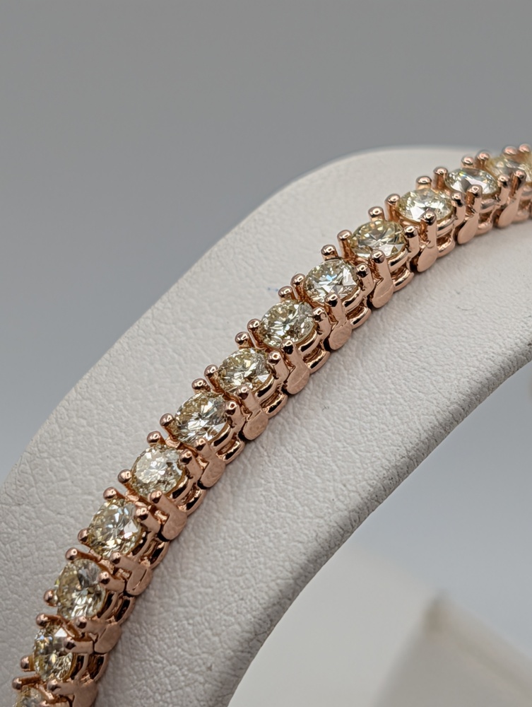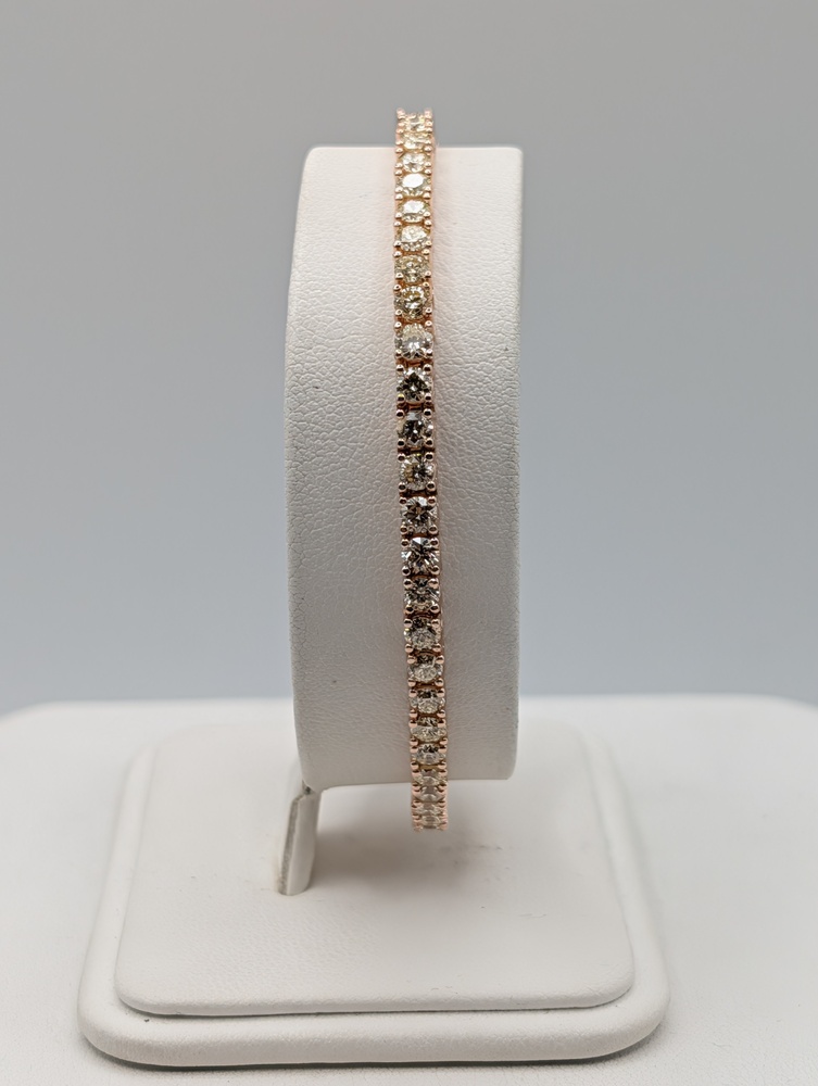 14kt Rose Gold ~5 Total Carat Weight G Color; VS2 Clarity Round Brilliant Cut Diamond 7" 3.3mm Tennis Bracelet - 12.50 Grams