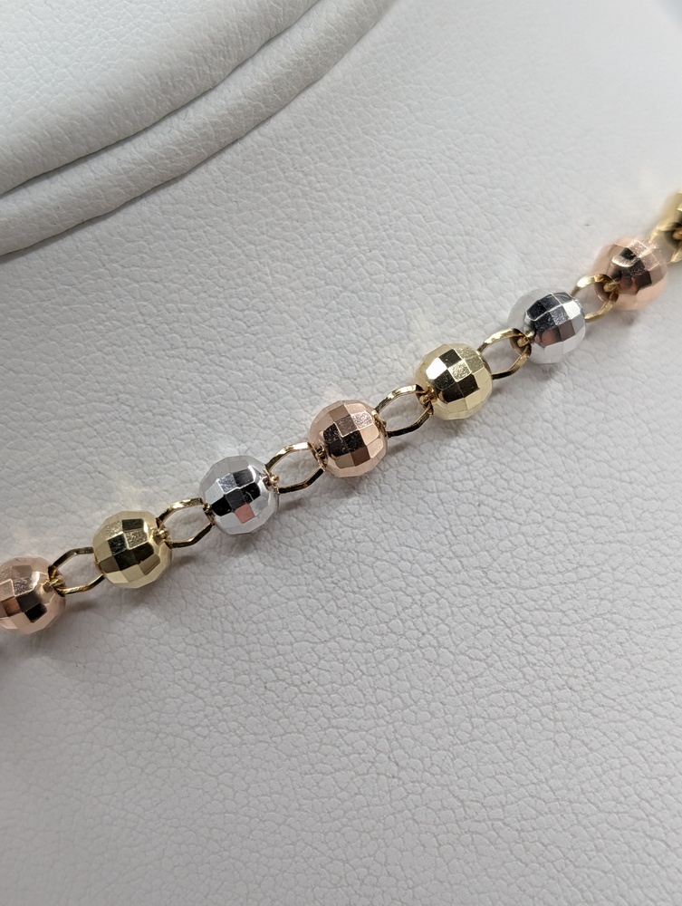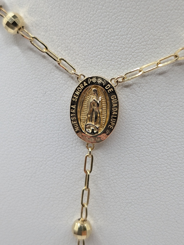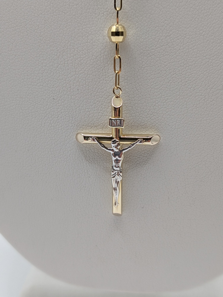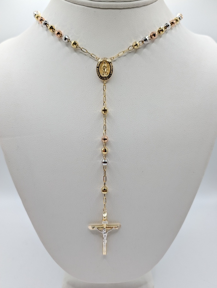 14kt Tri Color Gold 24" Religious Cross Rosary Necklace - 19.60 Grams