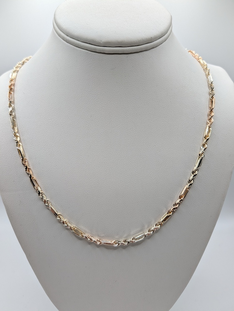 14kt Tri Color Gold 26" 3.4mm Milano Link Chain - 33.50 Grams