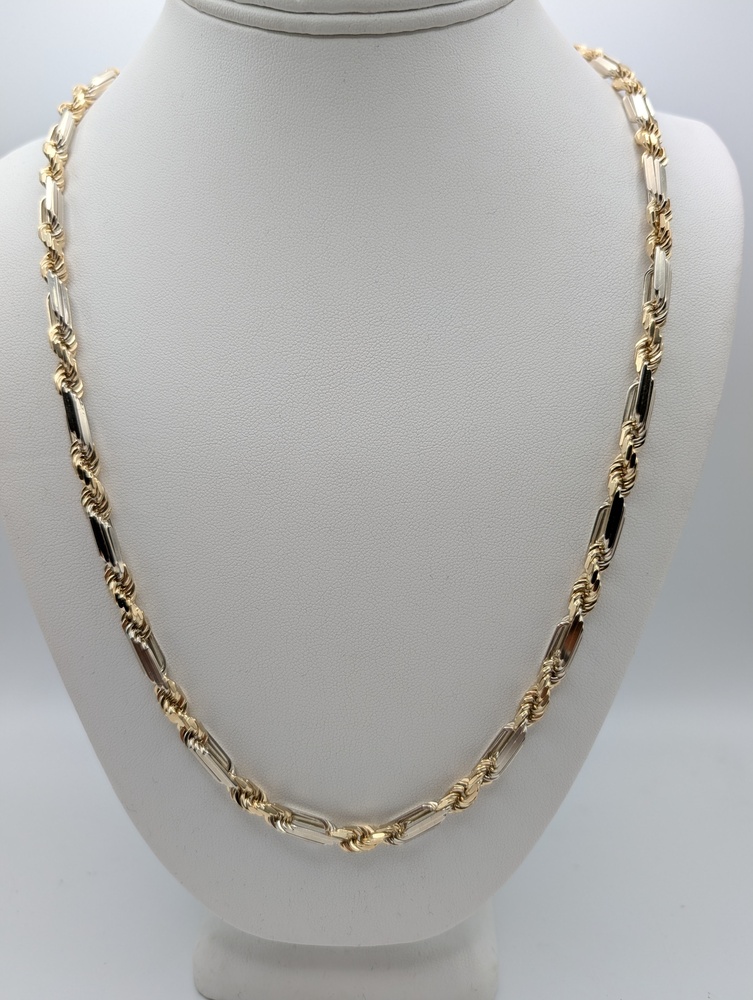 14kt Two Tone Gold 24" 5mm Milano Rope Link Chain - 64.70 Grams