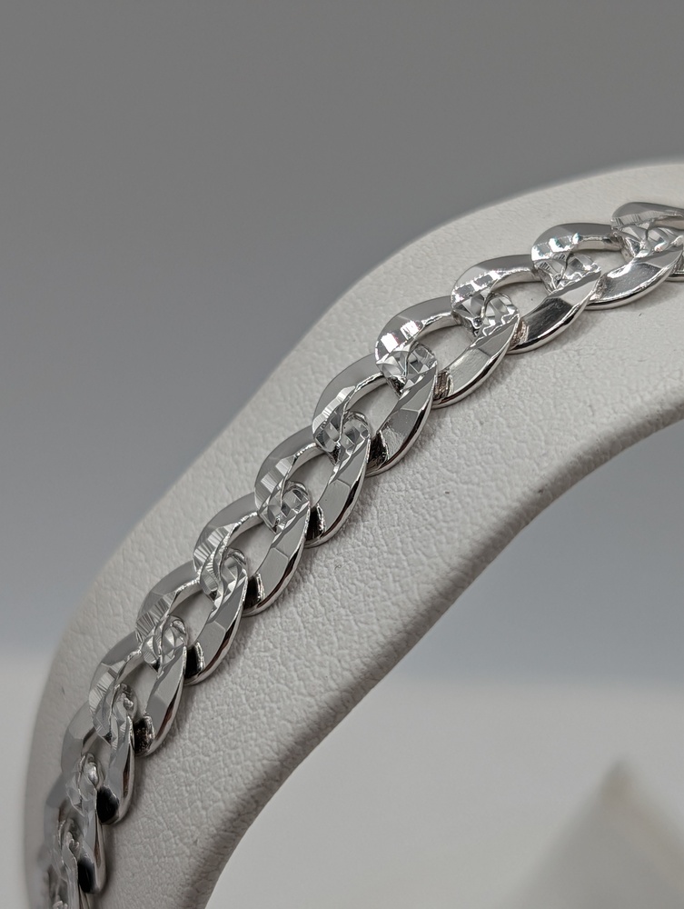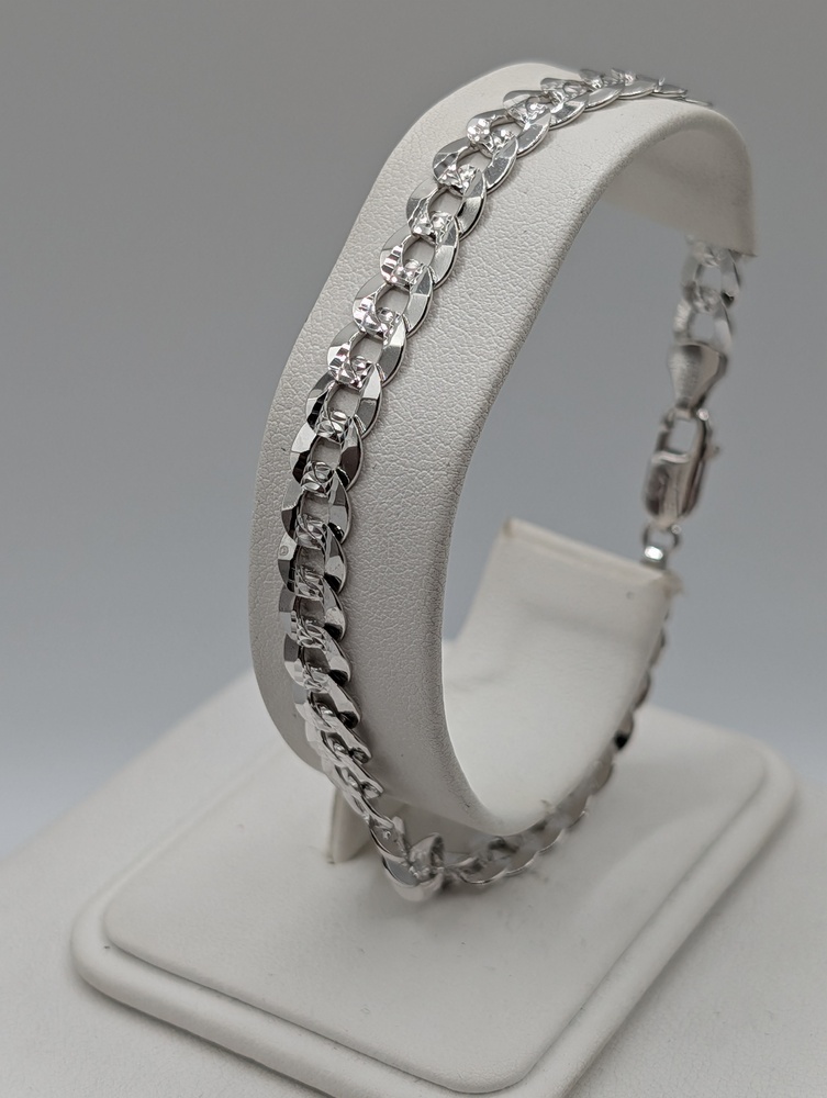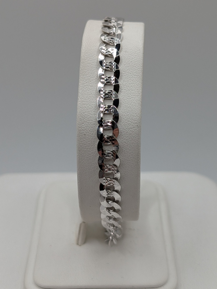 14kt White Gold 8" 6.7mm Diamond Cut Curb Link Bracelet - 10.20 Grams
