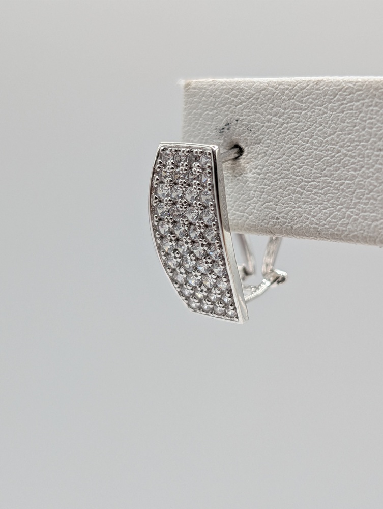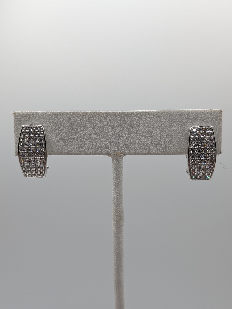 14kt White Gold Lab Grown ~1 Total Carat Weight Round Brilliant Cut Diamond Pave Set 5/8" French Clip Rectangular Earrings - 3.90 Grams [We Do Not Buy or Loan On Lab Grown Diamonds]