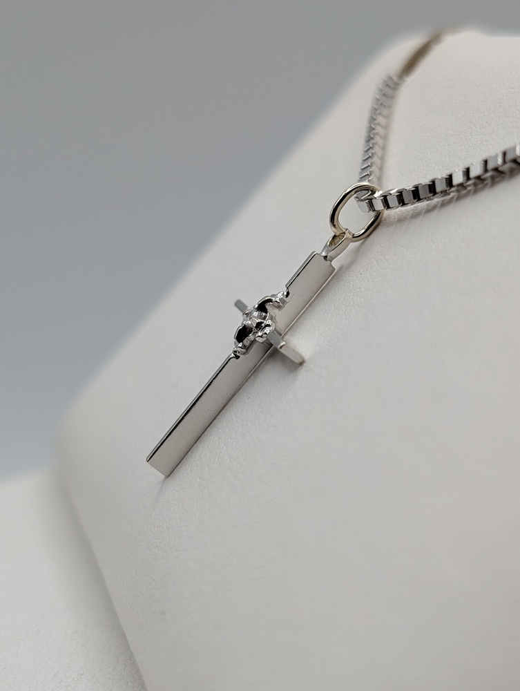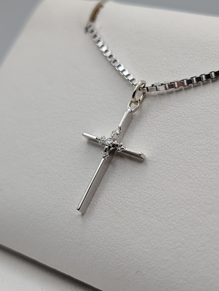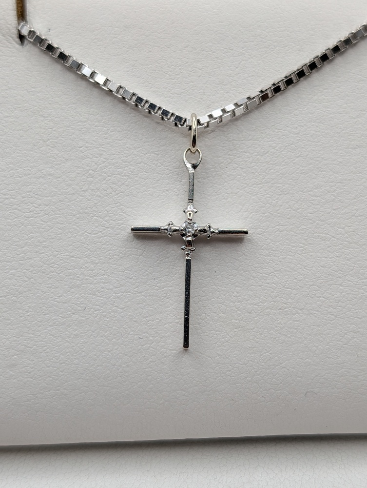 14kt White Gold ~.01 Carat Round Diamond Accent 1" Cross Pendant - 0.90 Grams  {Chain Sold Separately}