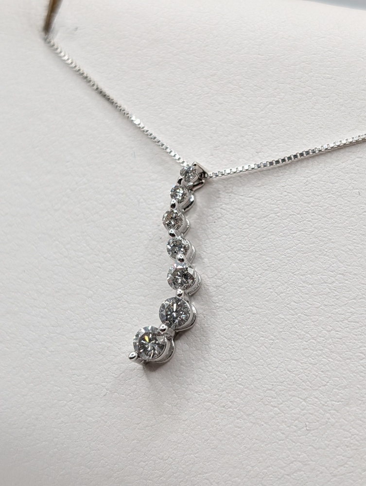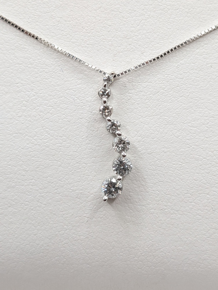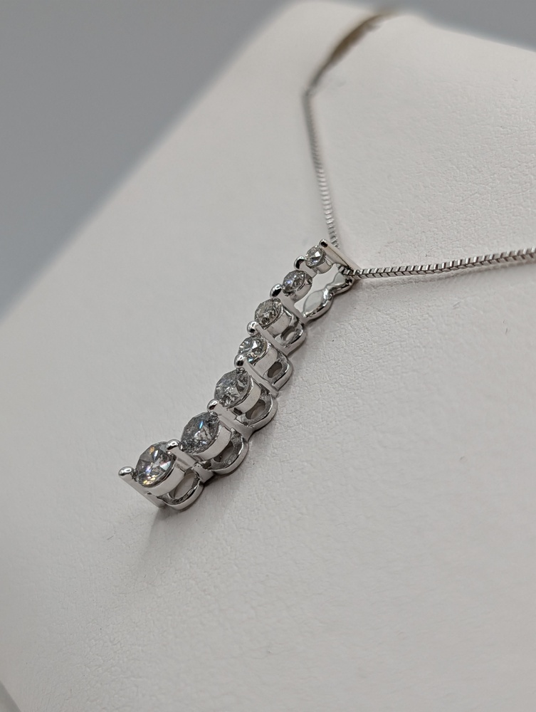 14kt White Gold ~.35 Total Carat Weight G Color; SI3 Clarity Round Brilliant Cut Diamond 3/4" Journey Pendant - 0.80 Grams   [Chain Sold Separately]