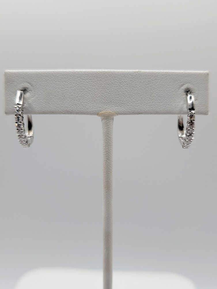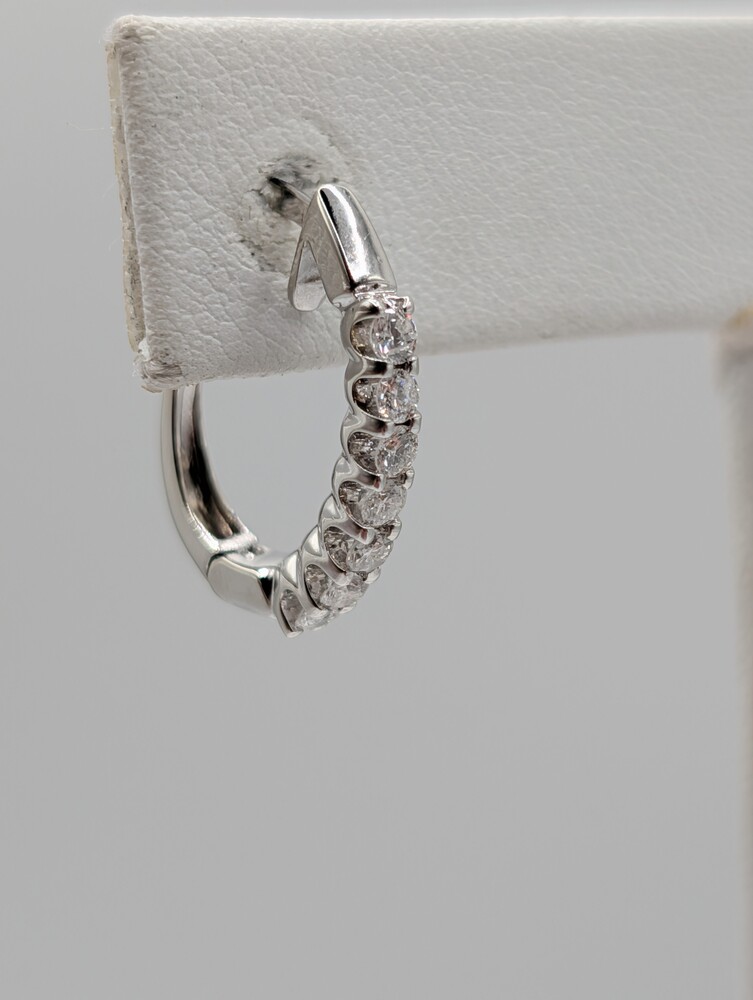 14kt White Gold ~.54 Total Carat Weight F Color; VS2 Clarity Round Brilliant Cut Diamond 3/4" Latch Back Half Hoop Earrings - 3.60 Grams