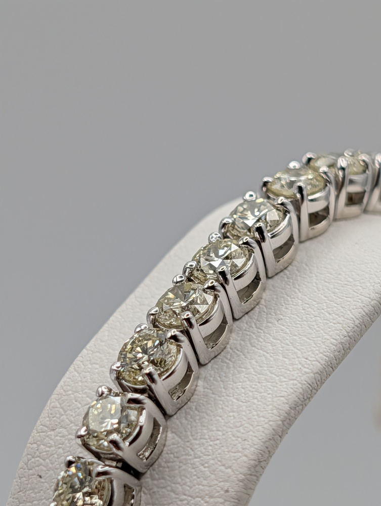 14kt White Gold ~10 Total Carat Weight K Color; SI1 Clarity Round Brilliant Cut Diamond 7" 4.8mm Tennis Bracelet - 21.30 Grams