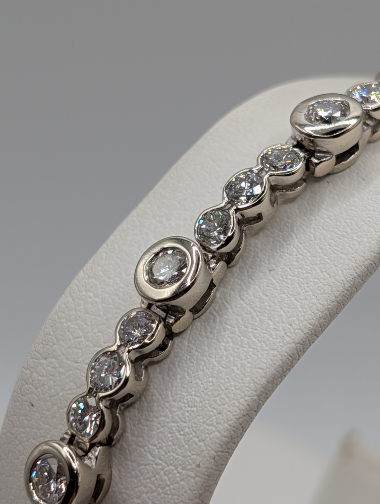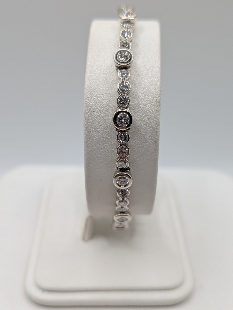 14kt White Gold ~2.5 Total Carat Weight G Color; VS2 Clarity Round Brilliant Cut Diamond Bezel and Semi-Bezel Set 7" Tennis Bracelet - 14.40 Grams
