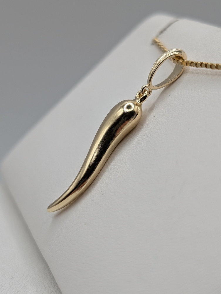 14kt Yellow Gold 1 1/4" Italian Horn Pendant - 1.30 Grams  [Chain Sold Separately]