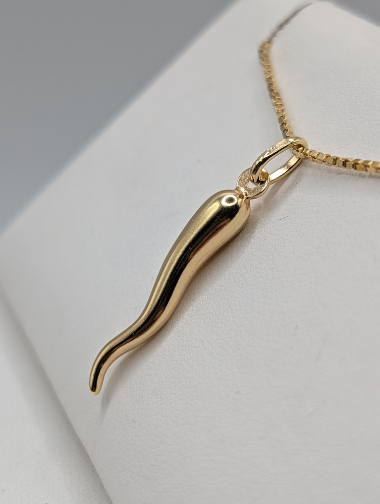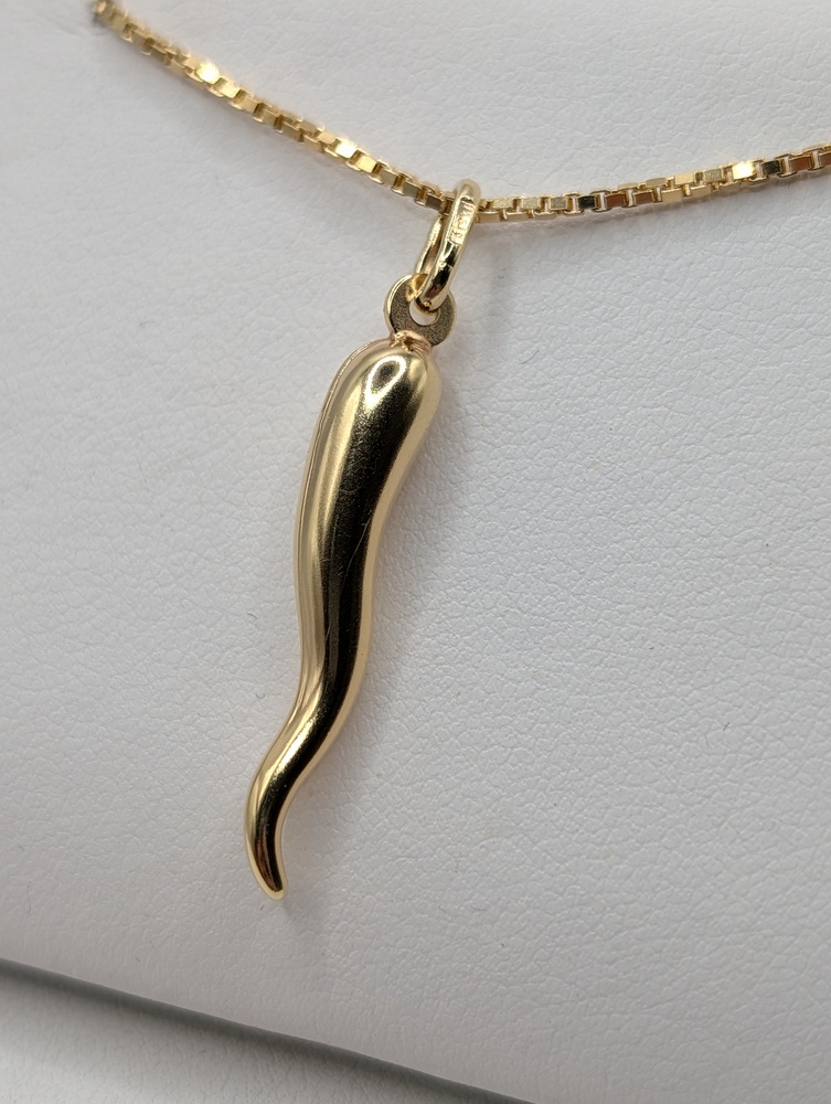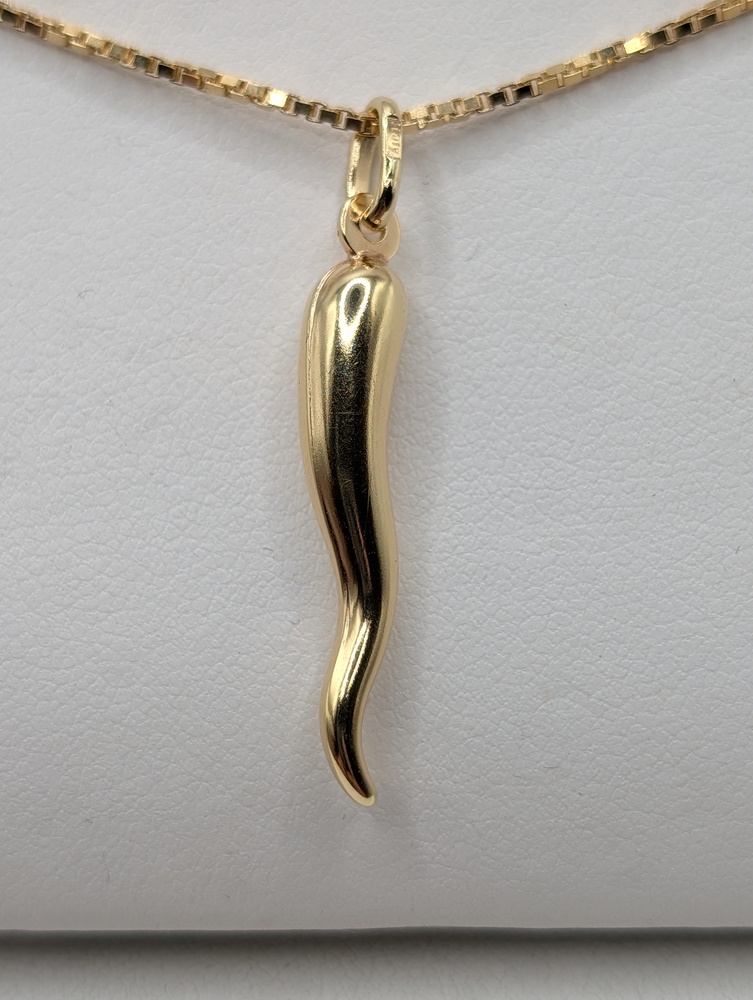 14kt Yellow Gold 1 1/4" Italian Horn Pendant - 1.10 Grams   [Chain Sold Separately]