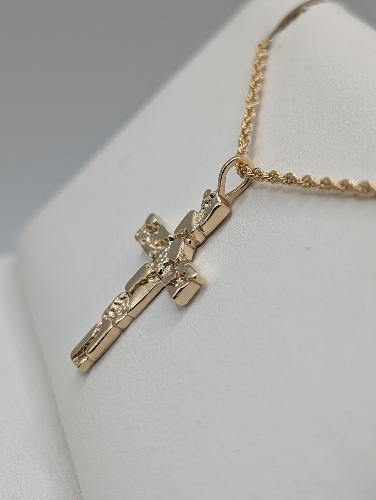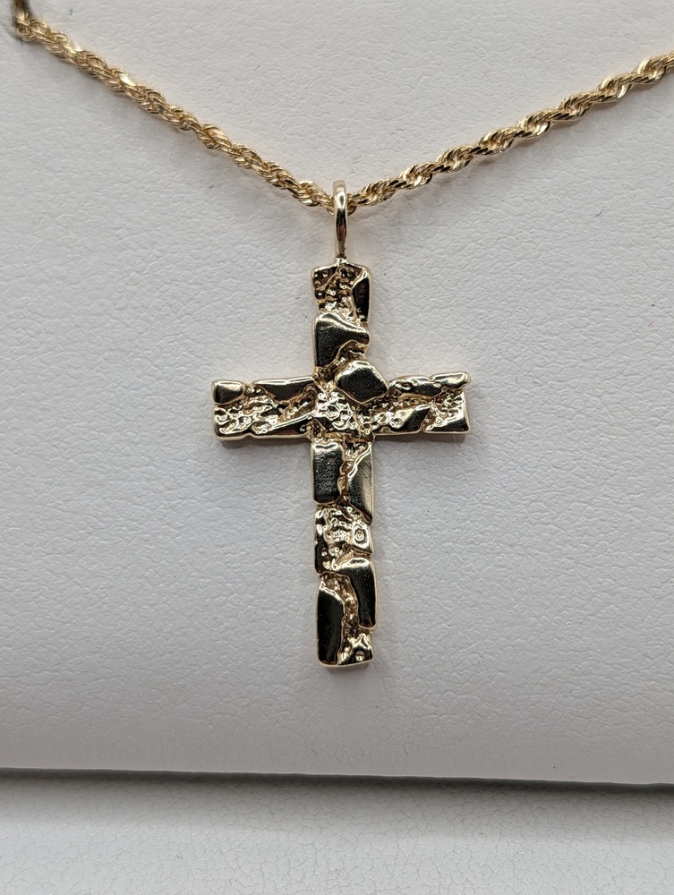 14kt Yellow Gold 1 1/4" Nugget Cross Pendant - 2.80 Grams   {Chain Sold Separately}
