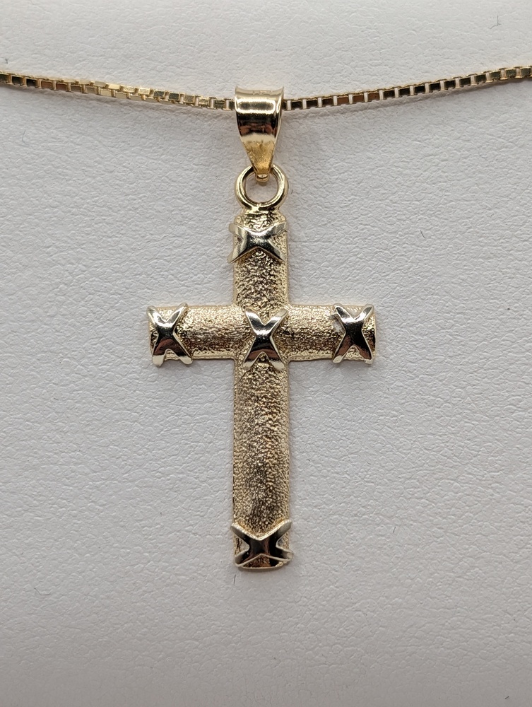 14kt Yellow Gold Brushed Finish 1 1/4" Wrapped Cross Pendant - 2.20 Grams