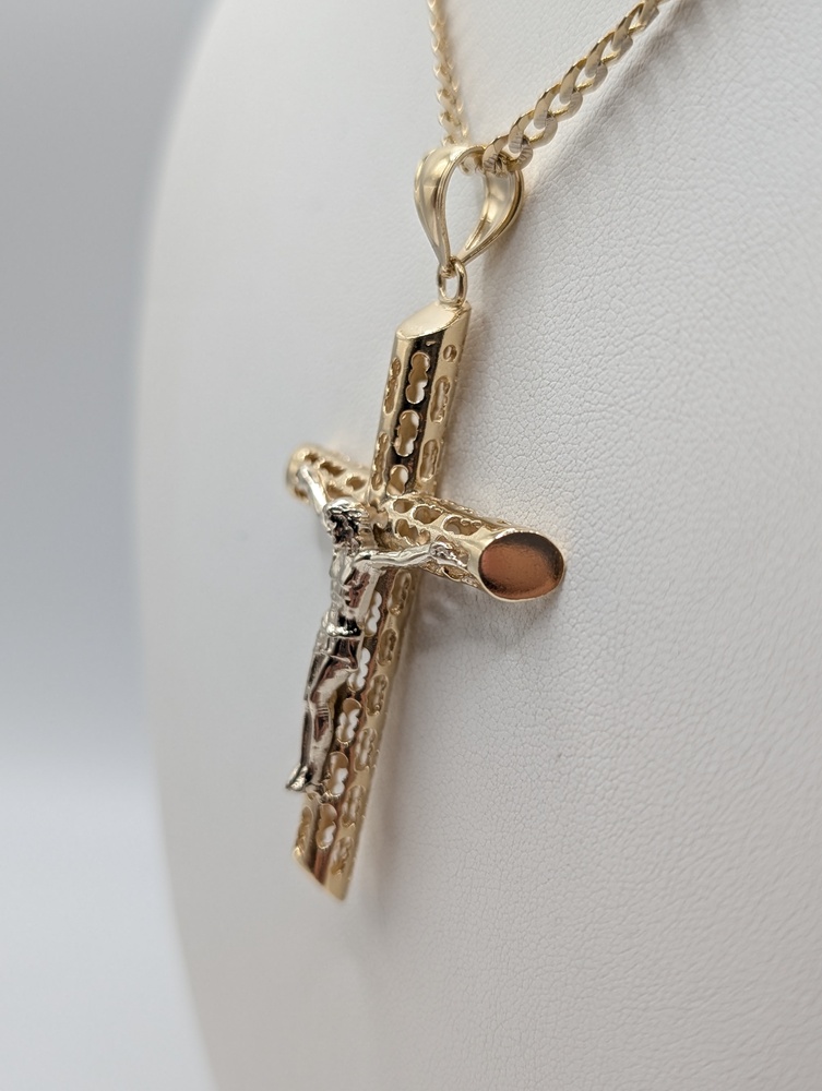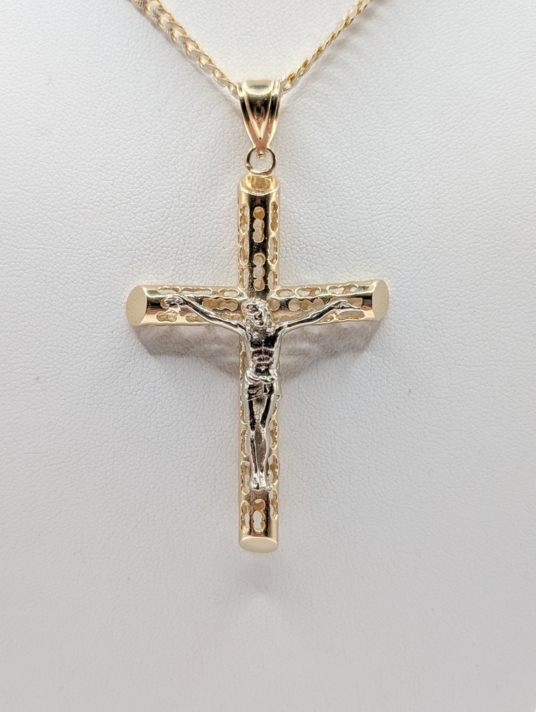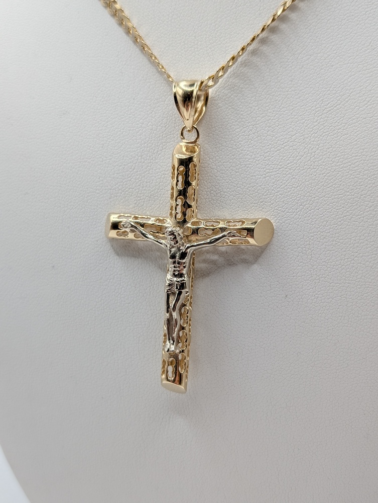 14kt Yellow Gold Hollow Pierced 2 1/2" Religious Cross Pendant - 9.60 Grams  {Chain Sold Separately}