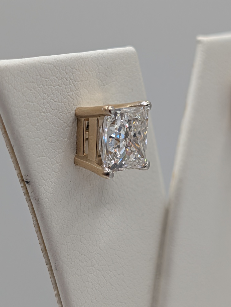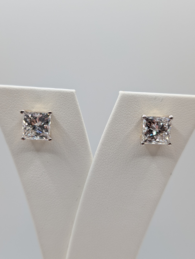 14kt Yellow Gold IGI Certified Lab Grown 4.12 Total Carat Weight F Color; VS2 Clarity Princess Cut Diamond Solitaire Stud Earrings - 2.30 Grams  {Has IGI Cert per Diamond}