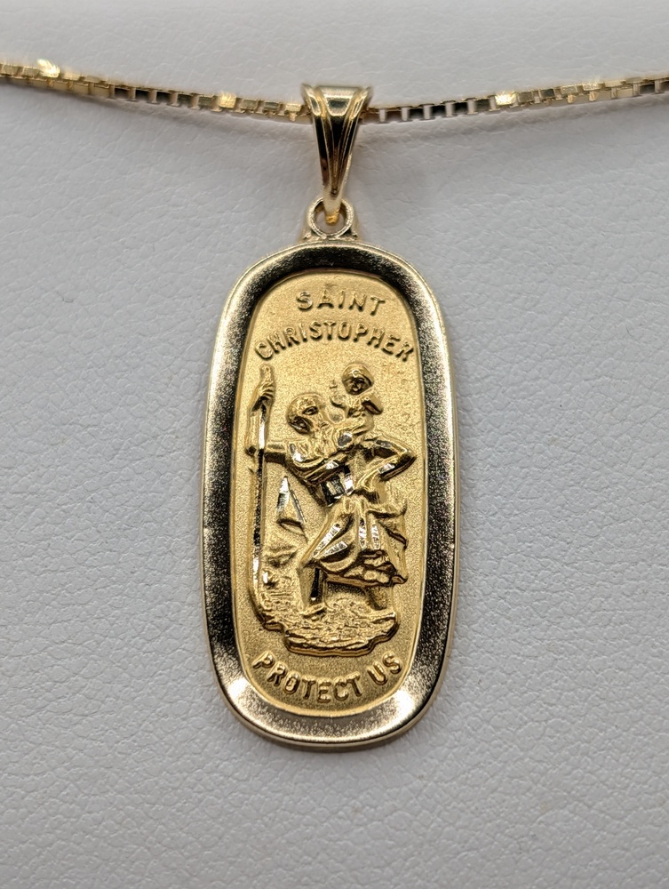 14kt Yellow Gold Oval St. Christopher 1 1/8" Religious Medal Pendant - 1.80 Grams