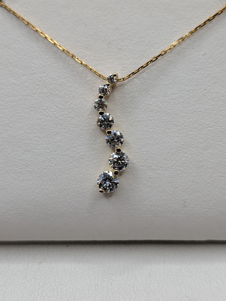 14kt Yellow Gold ~1 Total Carat Weight G Color; SI2 Clarity Round Brilliant Cut Diamond 7/8" Eternity Drop Pendant - 1.40 Grams {Chain Sold Separately}
