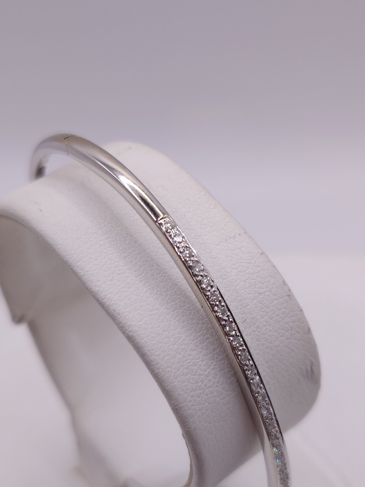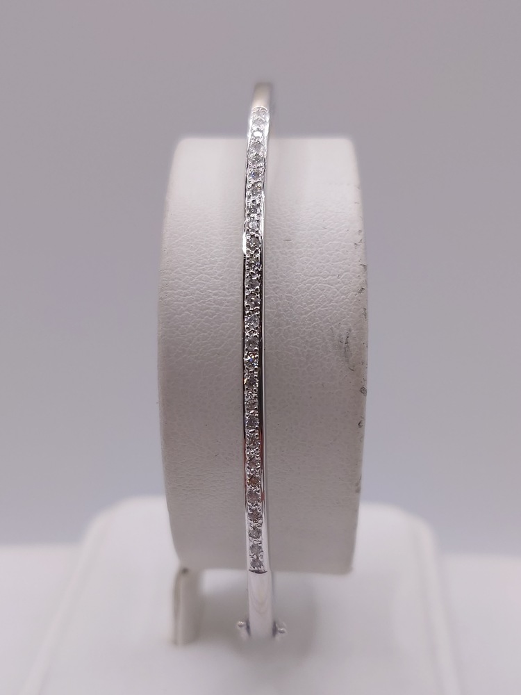 18kt White Gold ~.33 Total Carat Weight I Color; SI2 Clarity Round Brilliant Cut Diamond Pave Set 2 1/2" Hinged Bangle Bracelet - 7.40 Grams
