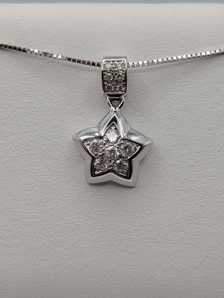18kt White Gold ~.40 Total Carat Weight I Color; SI1 Clarity Single Cut Diamond Cluster Set Accent 7/8" Star Pendant - 2.80 Grams {Chain Sold Separately}