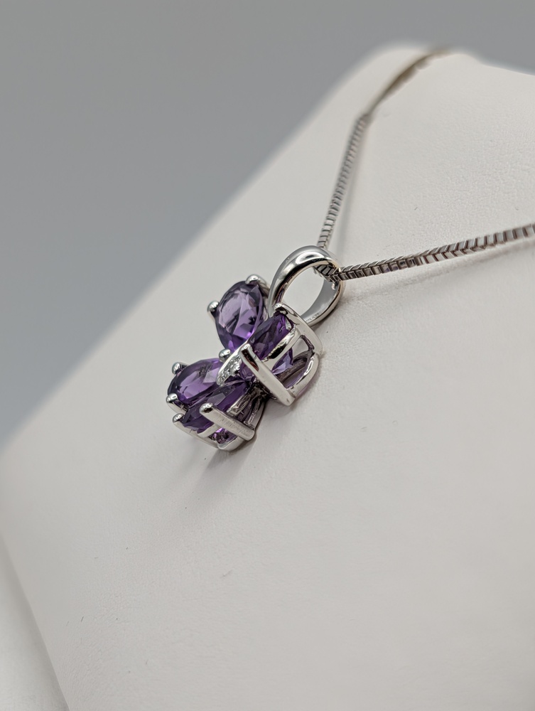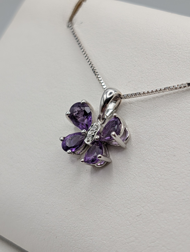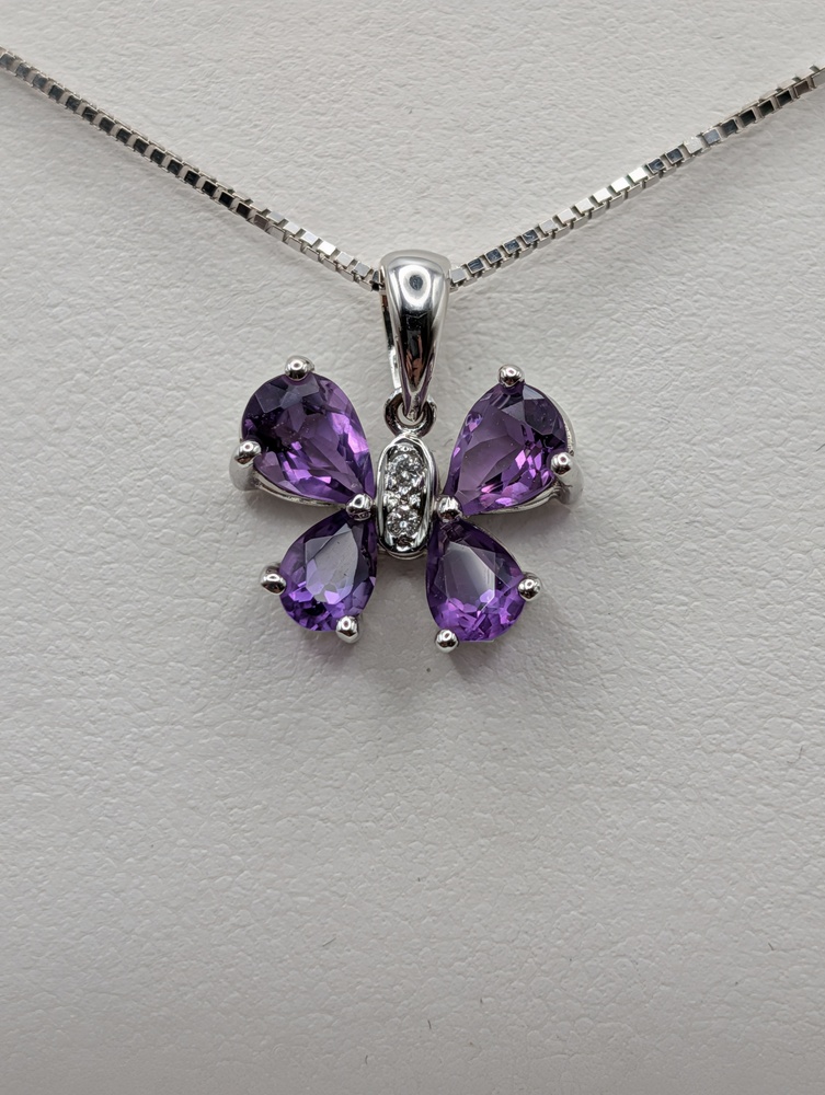 18kt White Gold ~.60 Total Carat Weight Pear Shape Amethyst With ~.02 Total Carat Weight Round Cut Diamond 1/2" Butterfly Pendant - 2.20 Grams {Chain Sold Separately}