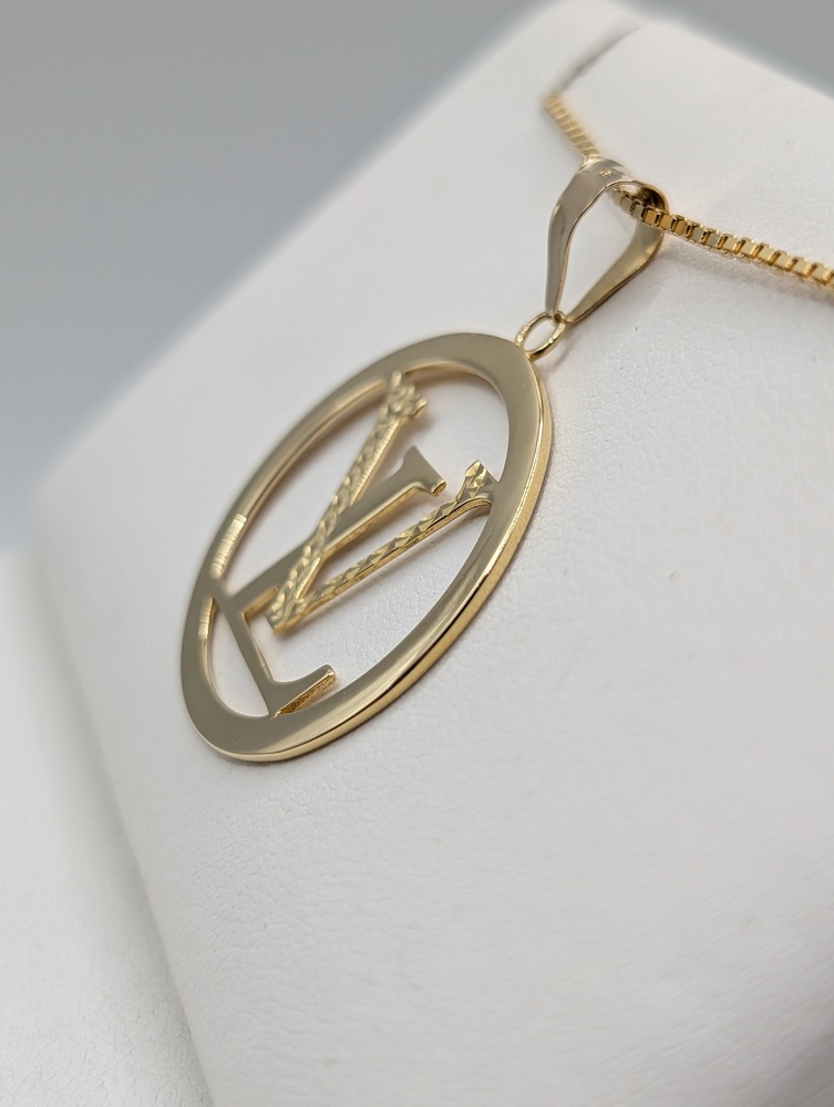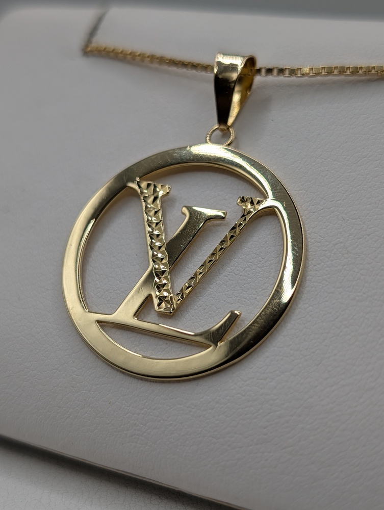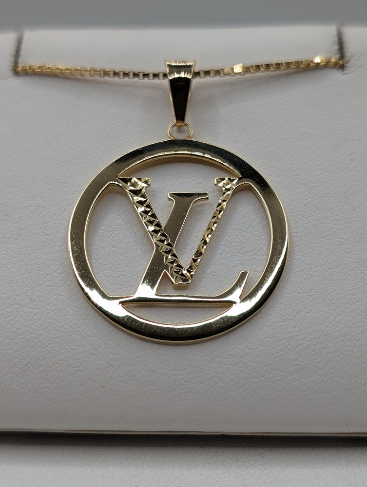 18kt Yellow Gold 1 1/4" Cut-out LV Round Pendant - 2.70 Grams