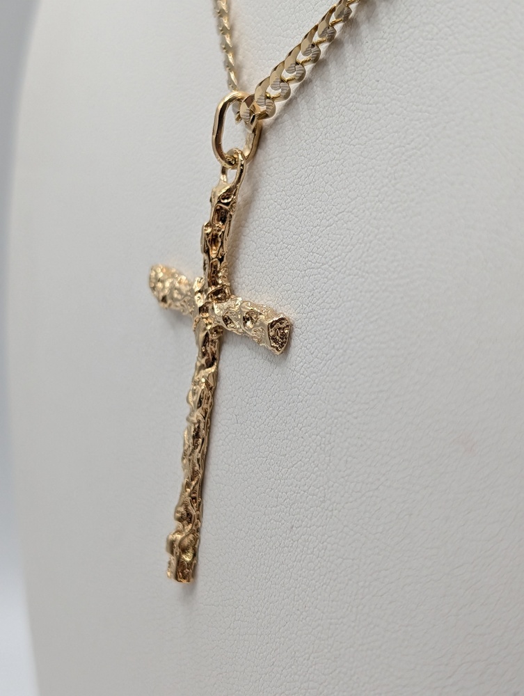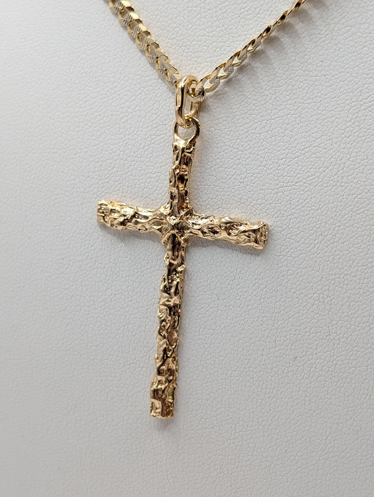 18kt Yellow Gold Bark Finish 2" Cross Pendant - 5.10 Grams
