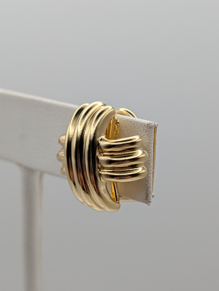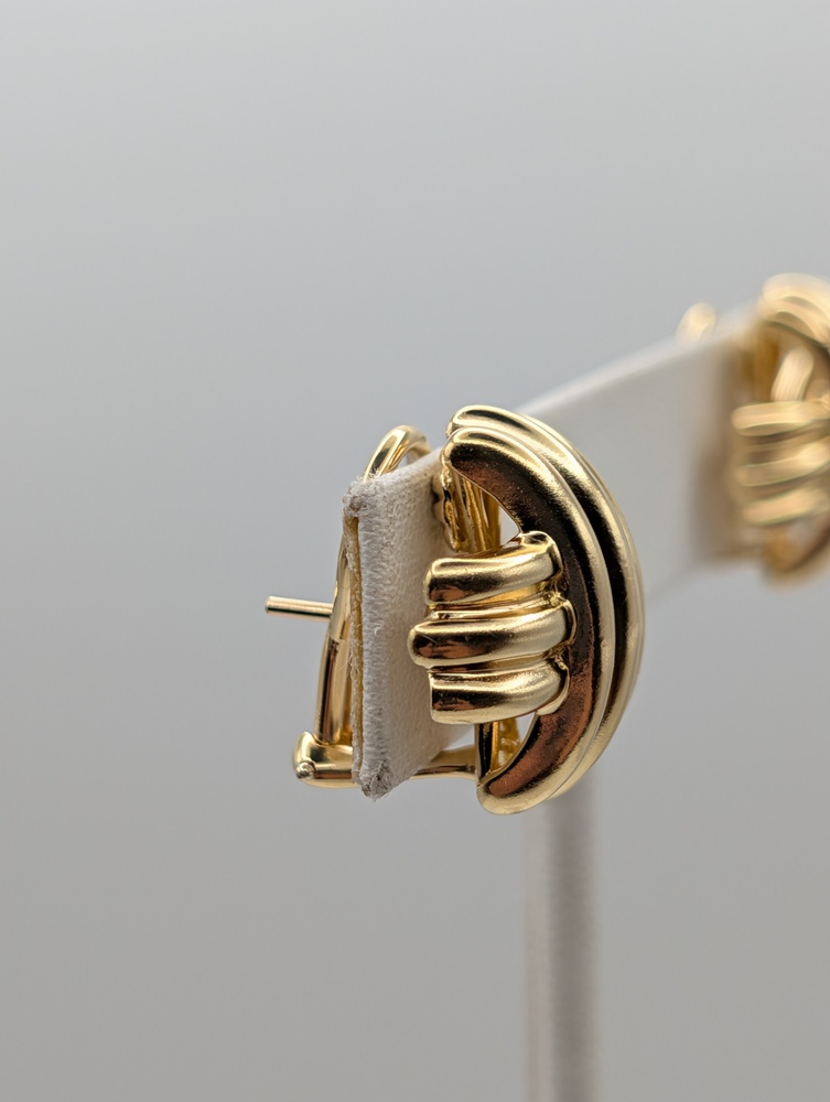 18kt Yellow Gold Chunky Ribbed Crisscross 3/4" French Clip Stud Earrings - 13.90 Grams