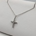950 Platinum Secondhand Tiffany & Co ~.20 Total Carat Weight Round Brilliant Cut Diamond 1/2" Cross Pendant on 18kt White Gold 18.5" 1mm Rolo Link Chain Necklace - 2.70 Grams [Chain Included] {2nd Hand Designer}