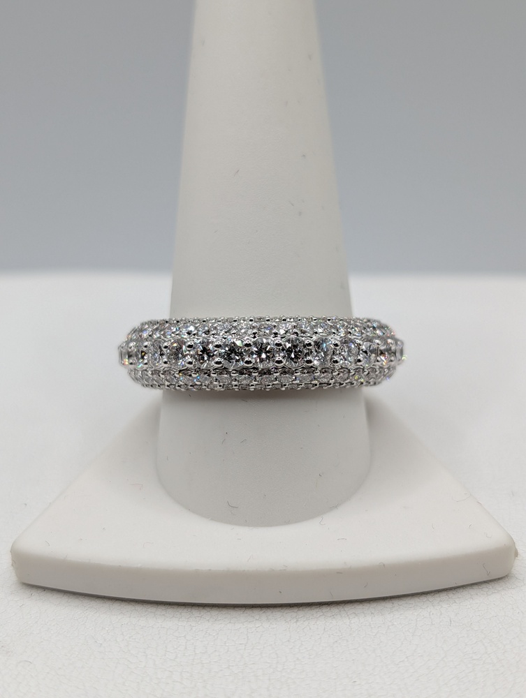 Size 11 14kt White Gold Lab Grown ~3 Total Carat Weight F Color; VS1 Clarity Round Brilliant Cut Diamond Pave Set Band Ring - 12.40 Grams [We Do Not Buy or Loan On Lab Grown Diamonds]
