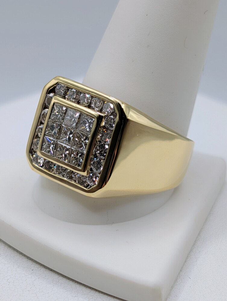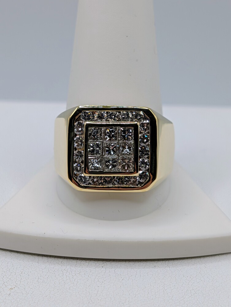 Size 12 18kt Yellow Gold ~2.5 Total Carat Weight H Color; VS2 Clarity Square Diamond Invisible Set Center With Round Brilliant Cut Diamond Halo 15.6mm Square Top Ring - 16.80 Grams