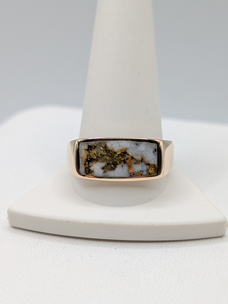 Size 12.5 14kt Yellow Gold Natural Gold Quartz Matrix Polished Finish 9.4mm Rectangle Ring - 12.80 Grams