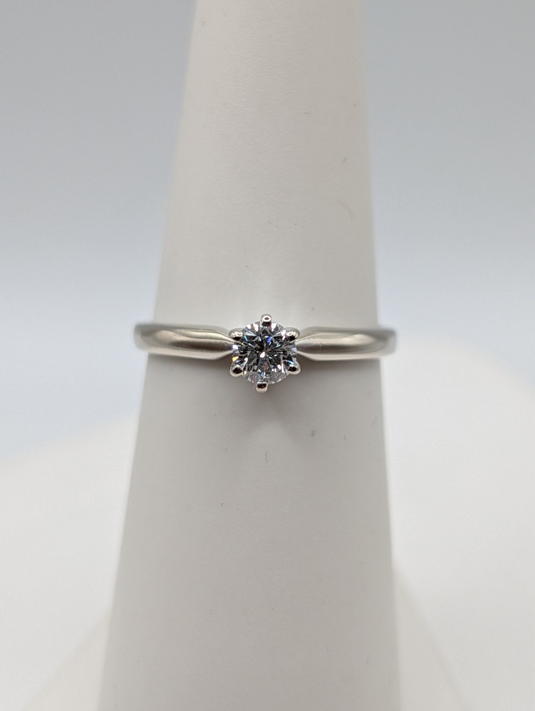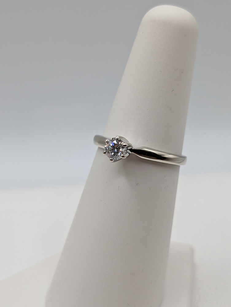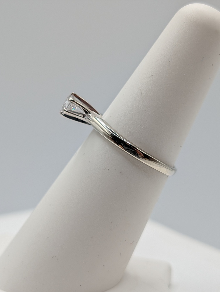 Size 5.5 14kt White Gold ~.15 Carat G Color; VS2 Clarity Round Brilliant Cut Diamond Solitaire Ring - 1.80 Grams