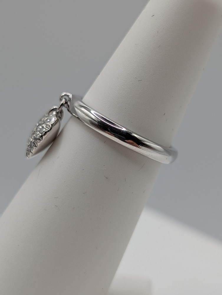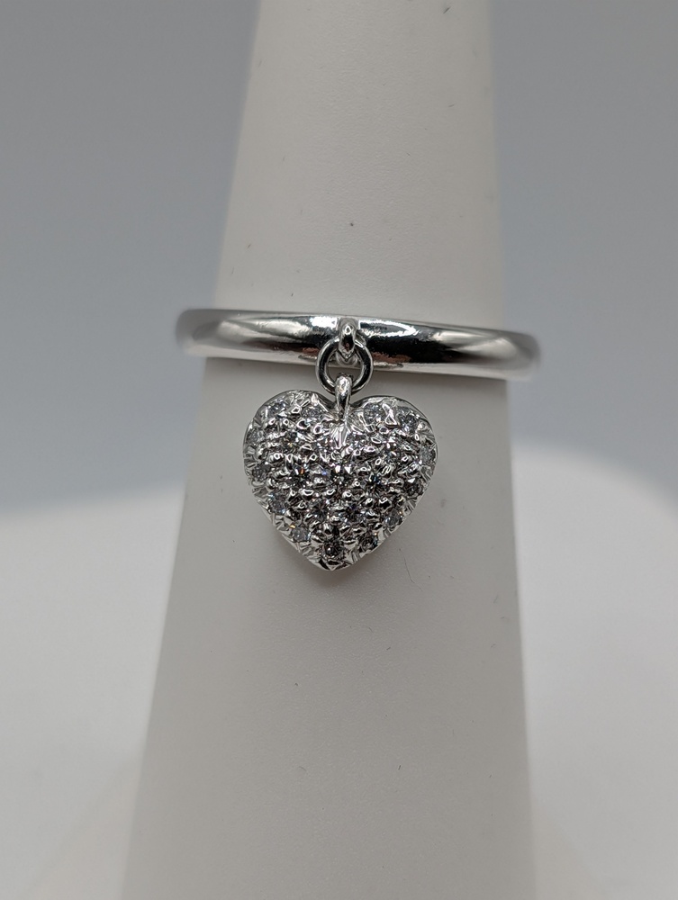 Size 5 950 Platinum Secondhand Tiffany & Co. ~.12 Total Carat Weight G Color; VS1 Single Cut Diamond Pave Heart Charm Ring - 6.50 Grams