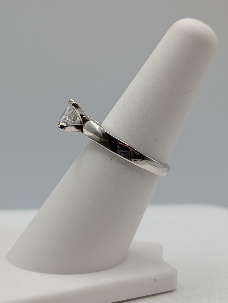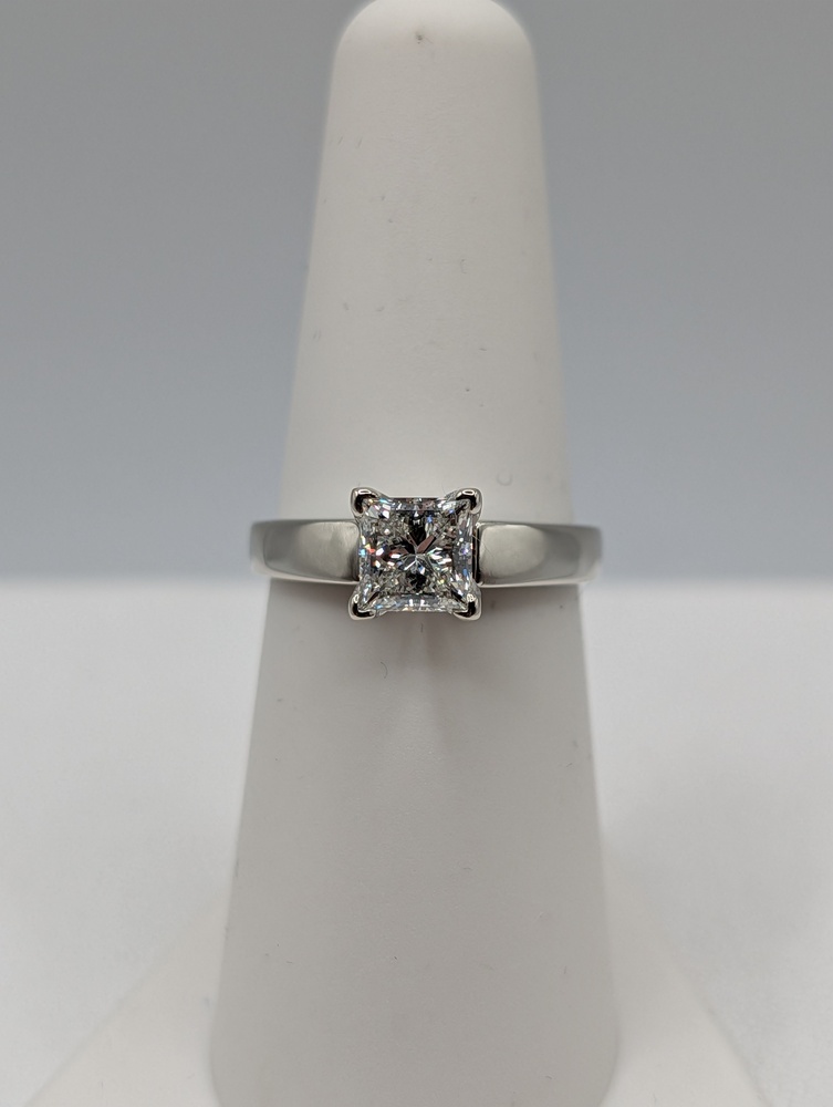 Size 6.5 14kt White Gold GIA Certified 1.05 Carat J Color; VS2 Clarity Square Modified Brilliant Cut Diamond Solitaire Ring - 3.60 Grams   ** Has GIA Certificate **