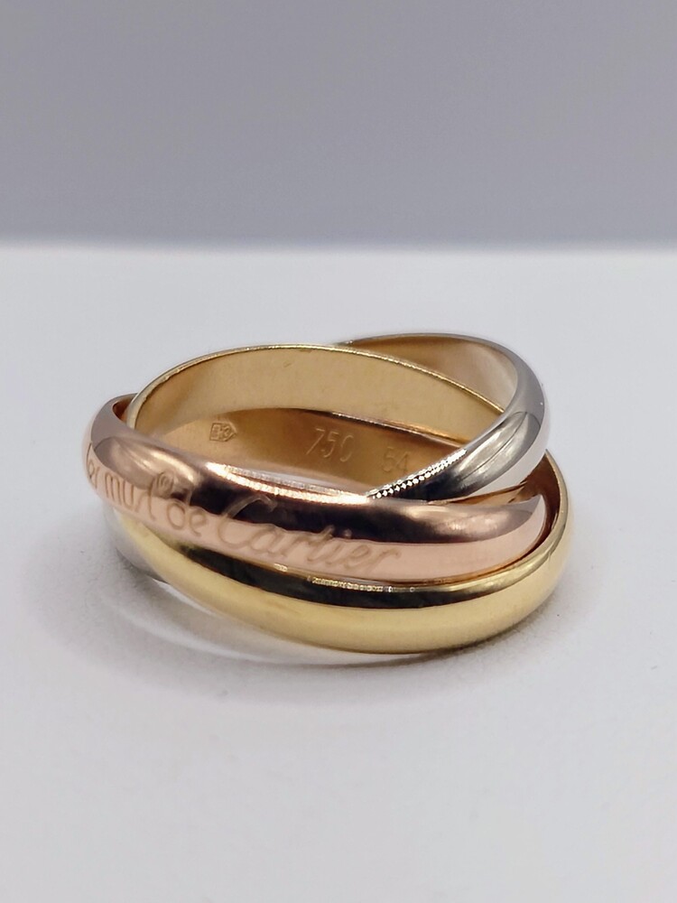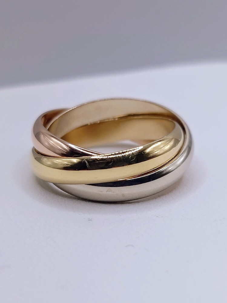 Size 6.5 18kt Tri Color Gold Polished Finish Intertwined 3-Band Ring - 8.40 Grams ** Designer Replica - This Is Not Cartier **
