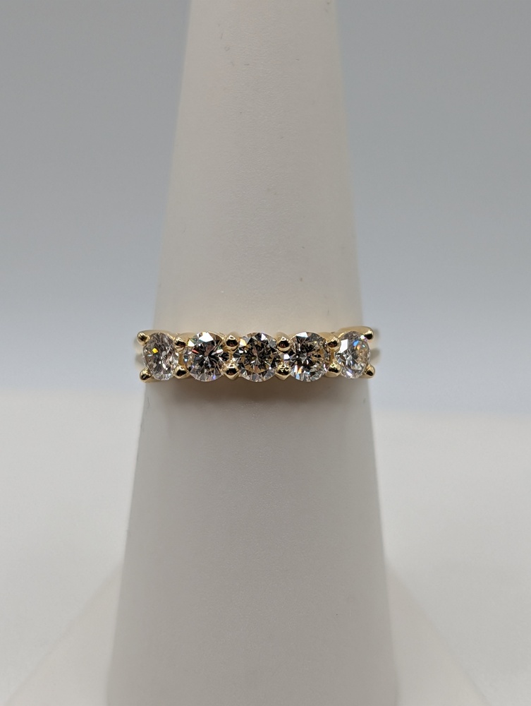 Size 6.5 18kt Yellow Gold ~.75 Total Carat Weight G Color; VS1 Clarity Round Brilliant Cut 5-Diamond Band Ring - 3.50 Grams