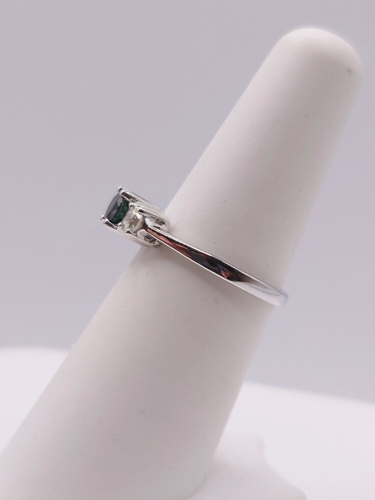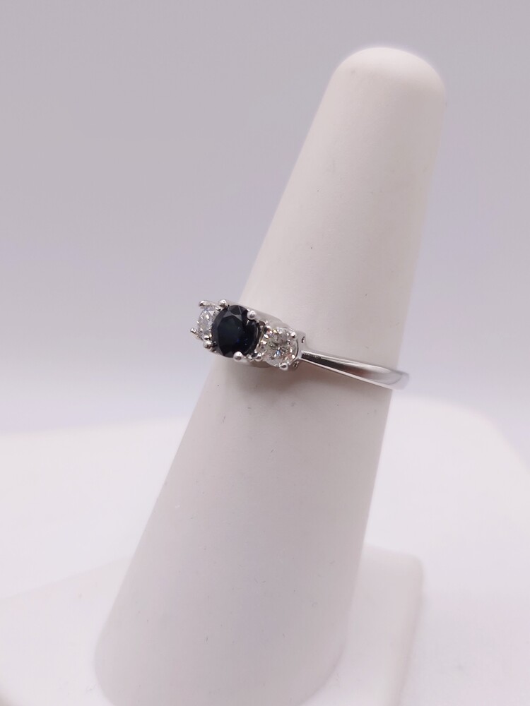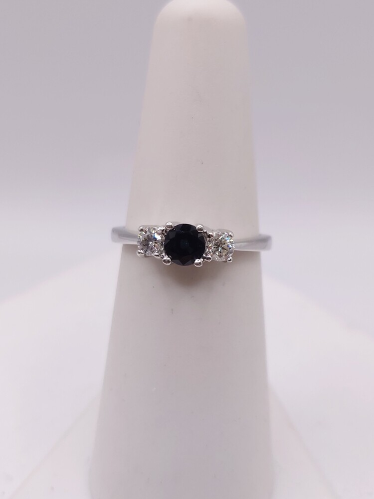 Size 6 950 Platinum ~.20 Carat Round Blue Sapphire Center With ~.16 Total Carat Weight J Color; I1 Clarity Round Brilliant Cut Diamond Side Accent Ring - 3.70 Grams