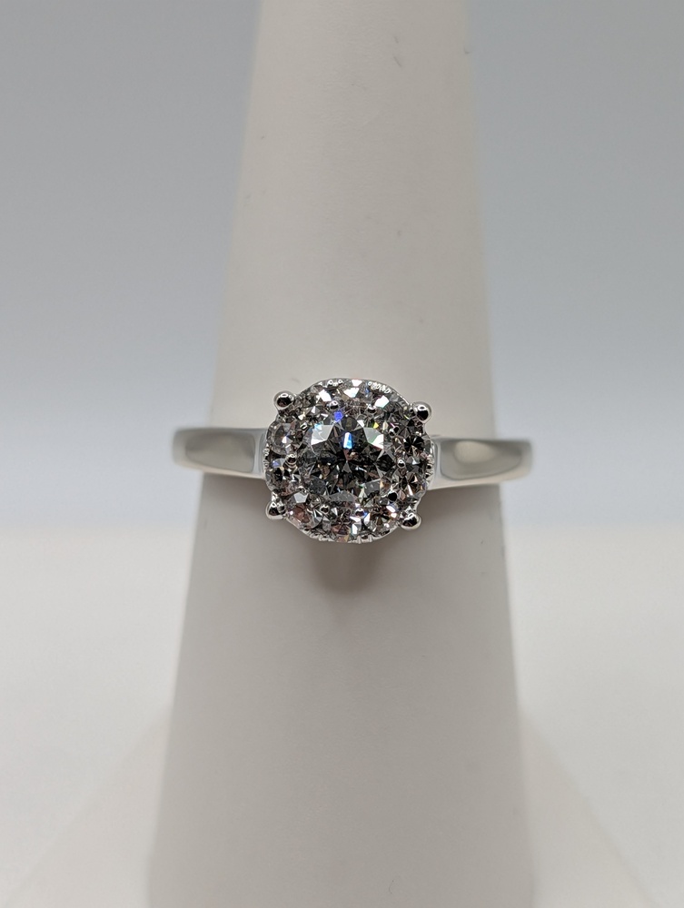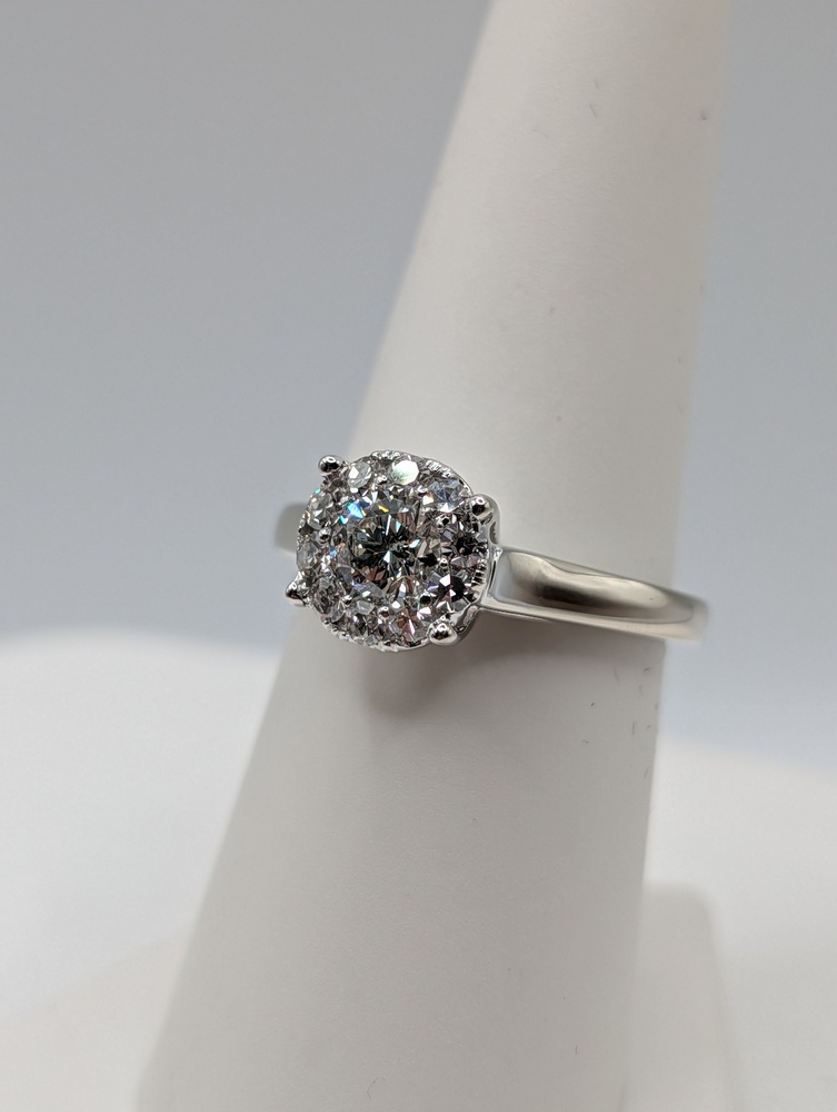 Size 7 14kt White Gold ~.70 Total Carat Weight H Color; SI2 Clarity Round Brilliant Cut Diamond Cluster Ring - 4.20 Grams