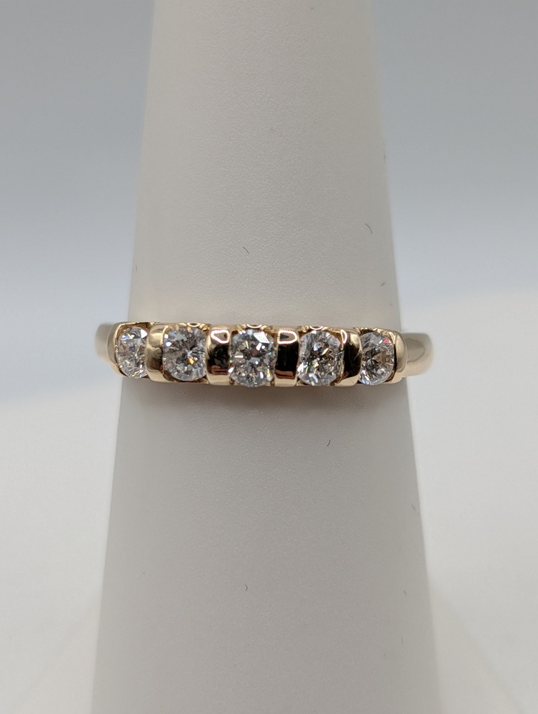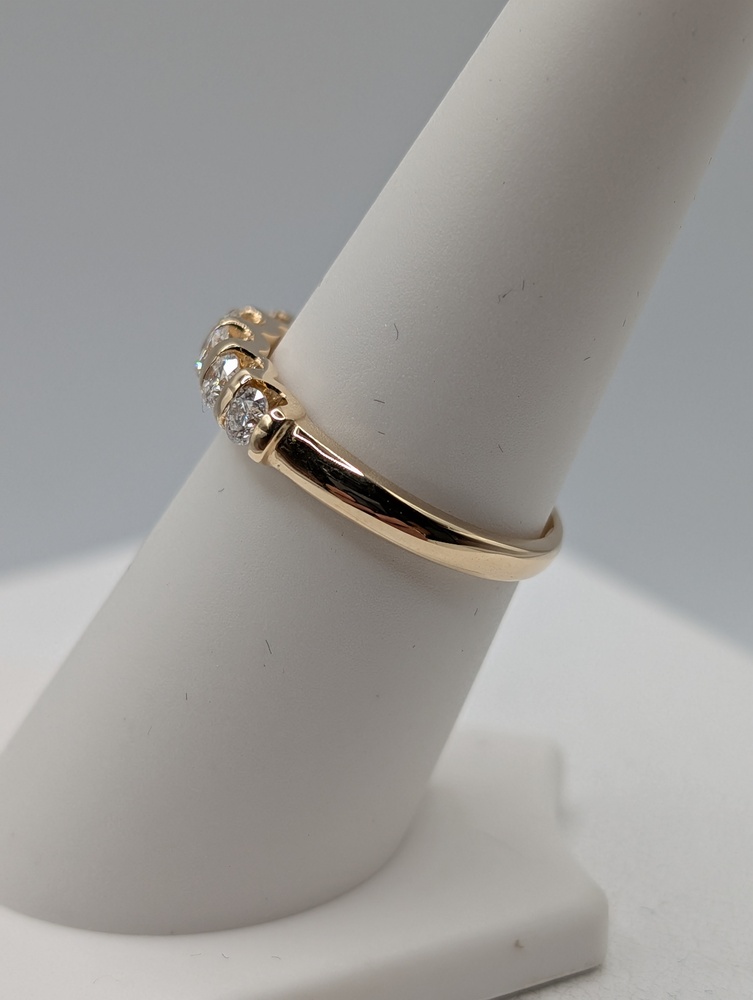Size 7 14kt Yellow Gold ~.50 Total Carat Weight G Color; SI1 Clarity Round Brilliant Cut 4-Diamond Accent Tension Set Band Ring - 2.70 Grams