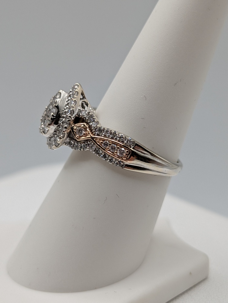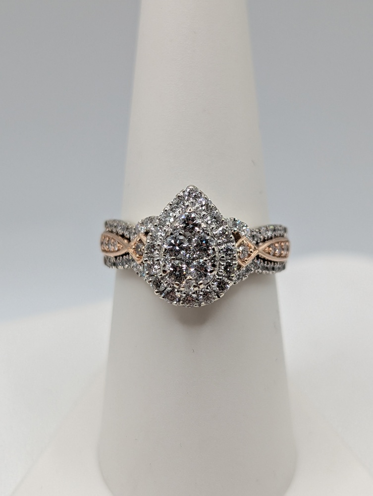 Size 7.5 14kt Two Tone Gold ~1tcw G Color; VS2 Clarity Round Brilliant Cut Diamond Pear Shape Cluster Ring with Round Brilliant Cut Diamond Accents