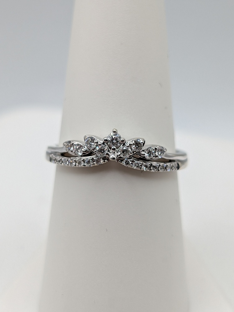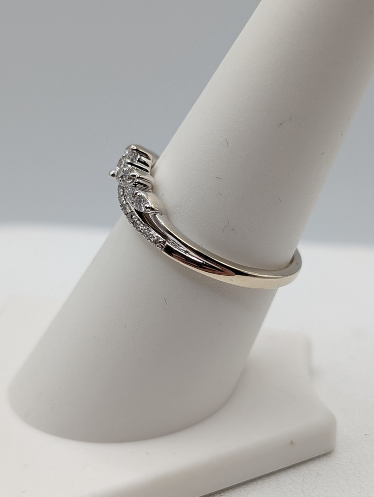 Size 7.5 14kt White Gold ~.15 Total Carat Weight Round Brilliant Cut Diamond Accent Tiara Style Band Ring - 2.80 Grams