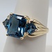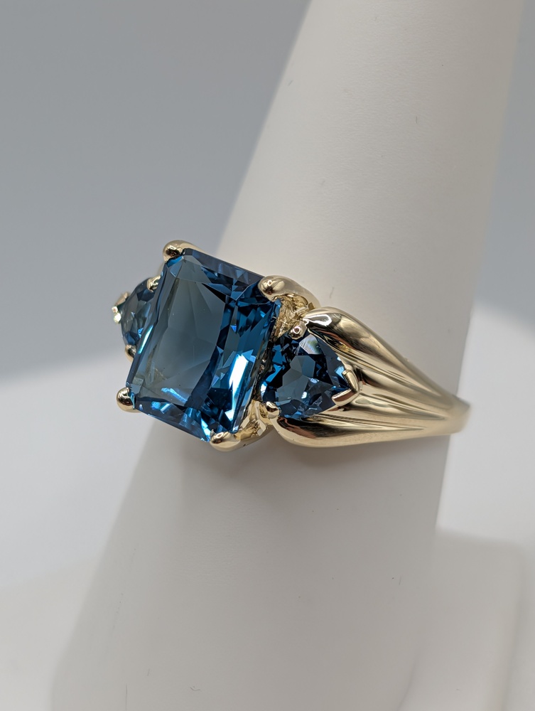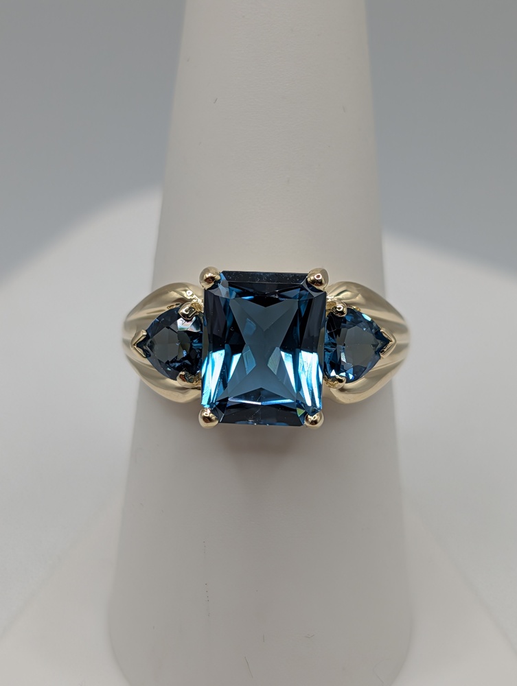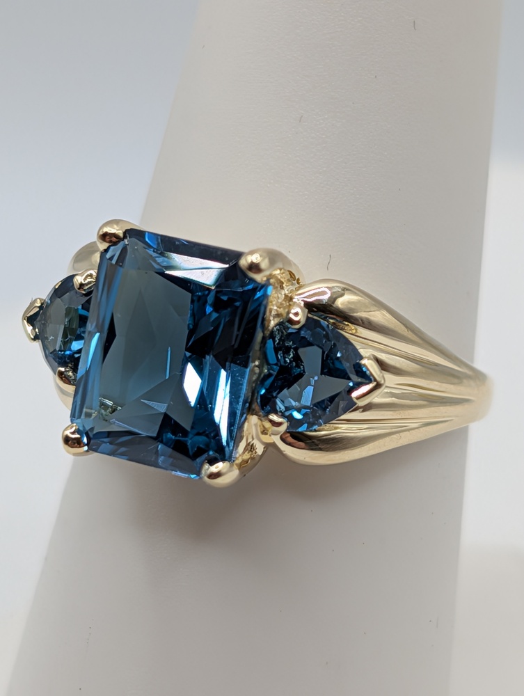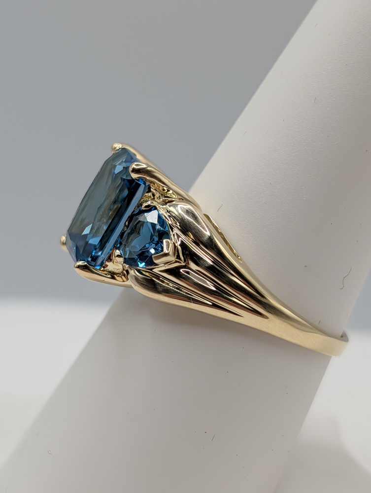 Size 8 14kt Yellow Gold ~4 Total Carat Weight Emerald and Heart Cut Blue Topaz Ring - 4.50 Grams