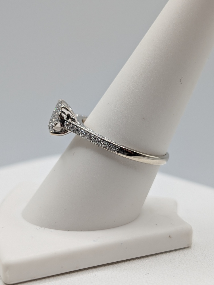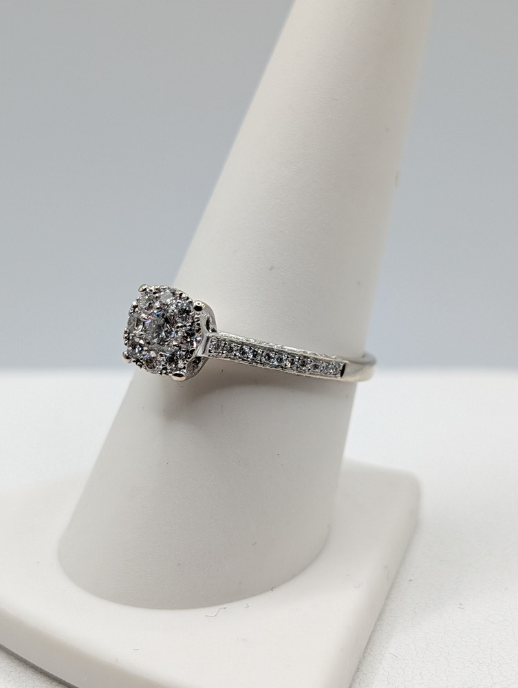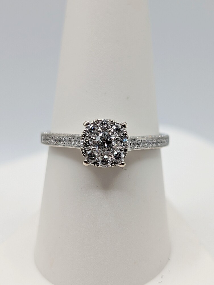 Size 8.5 14kt White Gold ~.50 Total Carat Weight G Color; VS2 Clarity Round Brilliant Cut Diamond Pave Set Center With Round Brilliant Cut Diamond Pave Tri-Set Side Accents Ring - 2.80 Grams