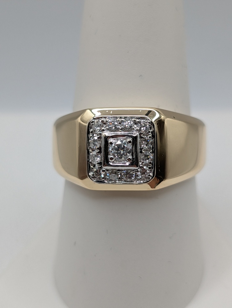 Size 9 18kt Yellow Gold ~.50 Total Carat Weight G Color; VS2 Clarity Round Brilliant Cut Diamond Halo Square Top Ring - 8.00 Grams