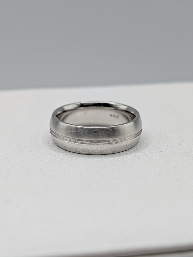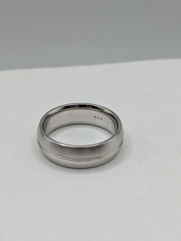 Size 9.5 950 Platinum Brushed and Polished Finish 7mm  Comfort Band Ring - 17.30 Grams