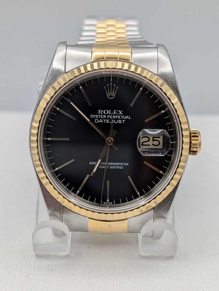 **Secondhand** 1988 Rolex Datejust 36mm Black Dial Fluted Bezel With Stainless Steel and 18kt Yellow Gold Jubilee Bracelet Watch - 103.40 Grams