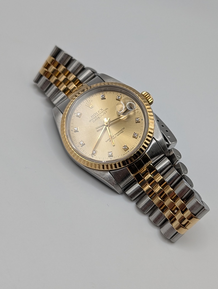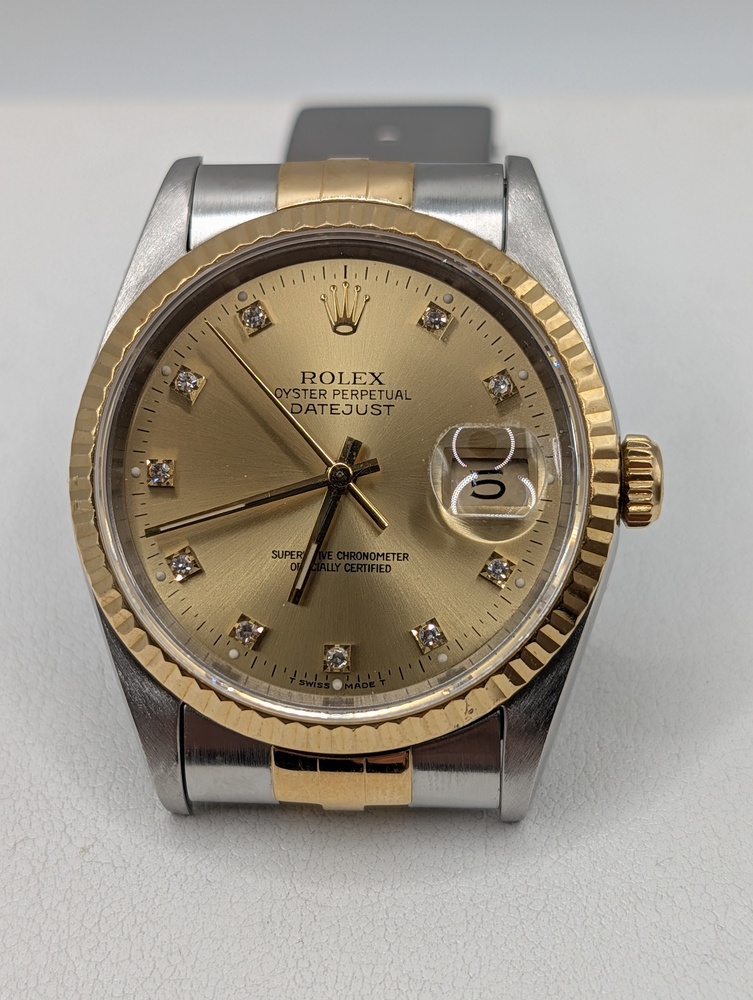 **Secondhand** 1991 Rolex Datejust SS/18kt 36mm Two Tone Diamond Champagne Dial Fluted Bezel Jubilee Bracelet (No box or papers)