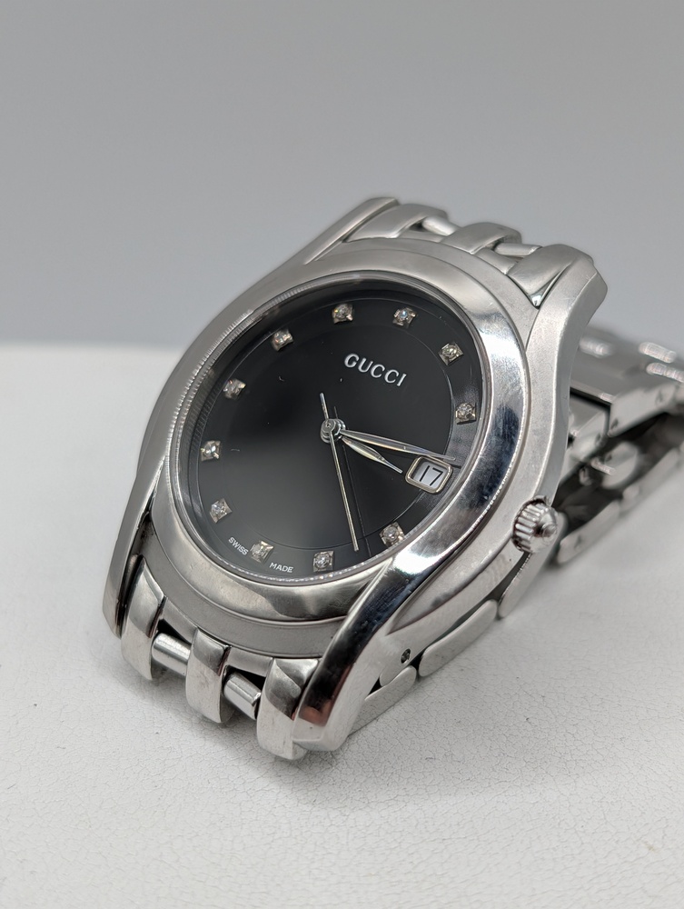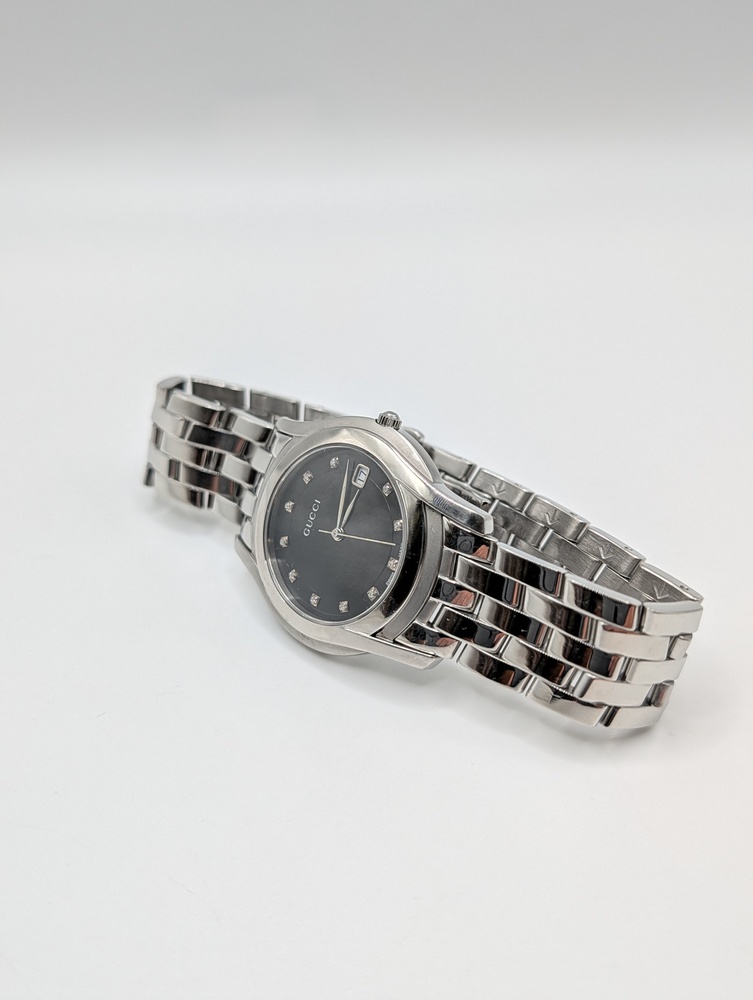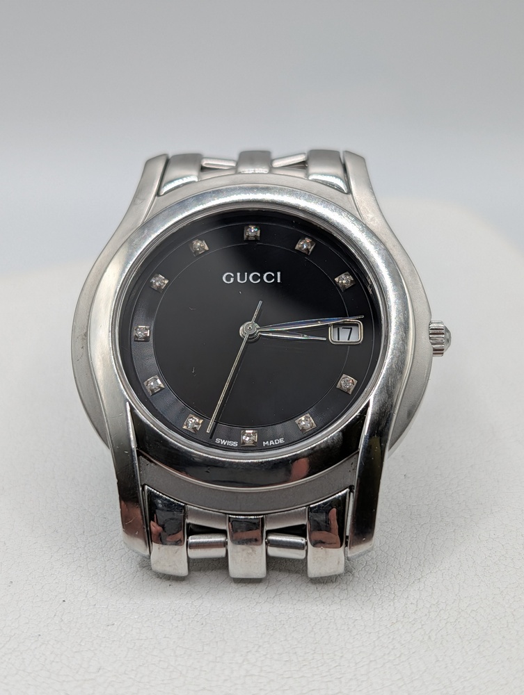 ** Secondhand ** Stainless Steel Gucci 5500M Black Diamond Dial Watch (No box or papers)  - 95.50 Grams