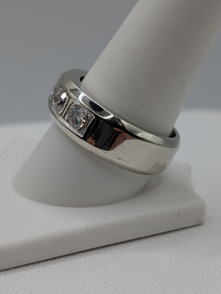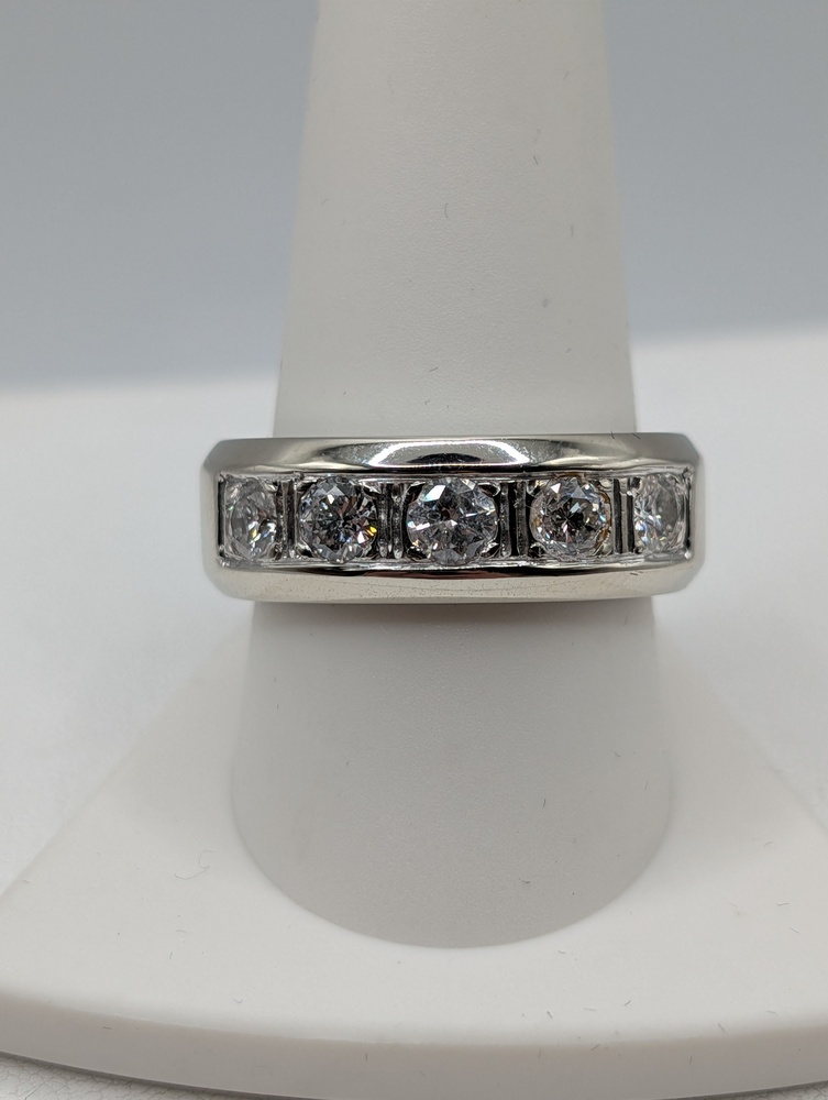 Size 10.5 14kt White Gold ~1 Total Carat Weight G Color; SI2 Clarity Round Brilliant Cut 5-Diamond Band Ring - 15.30 Grams